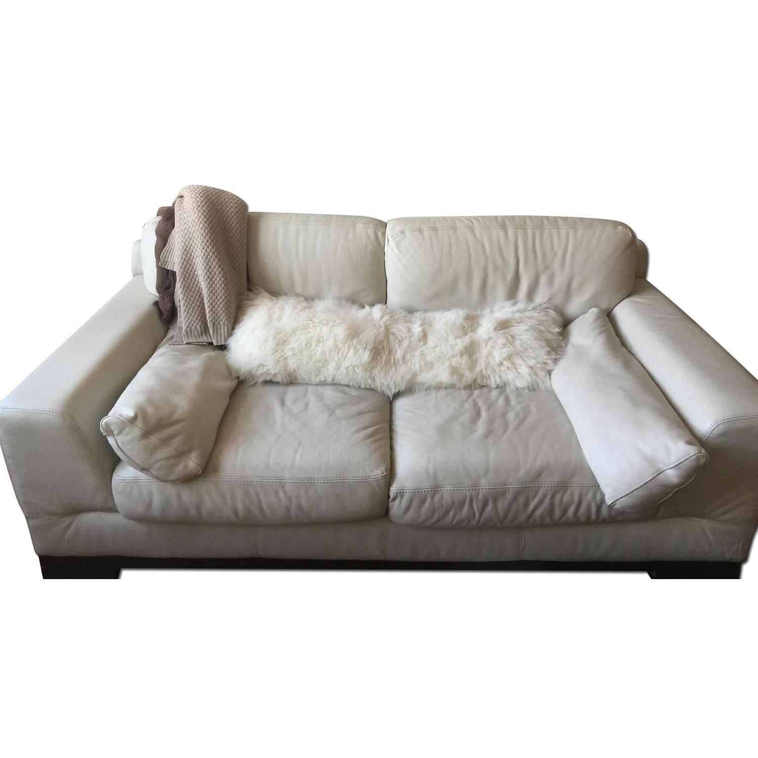 Seller's Notes:I am moving to a smaller apartment and am sad to need to sell my couch! It's a beautiful Natuzzi leather sofa - perfect size for a 1 bedroom/large studio - in white leather. I've loved and cared for it well over the years - it has some signs of normal wear on the seat cushions but is in otherwise excellent shape! Please see photos! Seat height is 18". Please note that throws/lambswool pillow pictured are not included in this listing. Original, matching side pillows are included. It was originally purchased for nearly $4,000 and can be yours for a steal!