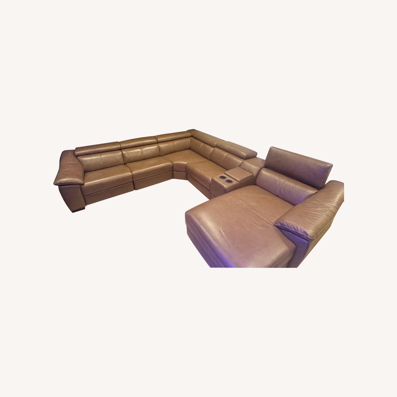 Seller's Notes:Real Natuzzi Italian Leather sectional Sofa With Interchangeable Sections And Recliners, cup Holders, Storage, and USB Charging Ports Barely used, like brand new