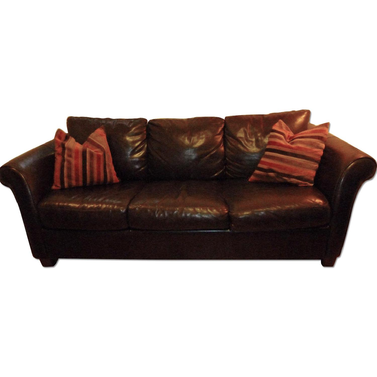 Seller's Notes:CHOCOLATE BROWN LEATHER SOFA HIDE A BED BY ITALSOFA: Rich dark brown Italian leather sofa with 3 non detachable cushion back, the seat also appears to be three cushions but is one long piece. 80"l, 32"h.(includes cushion height). sleeper queen size