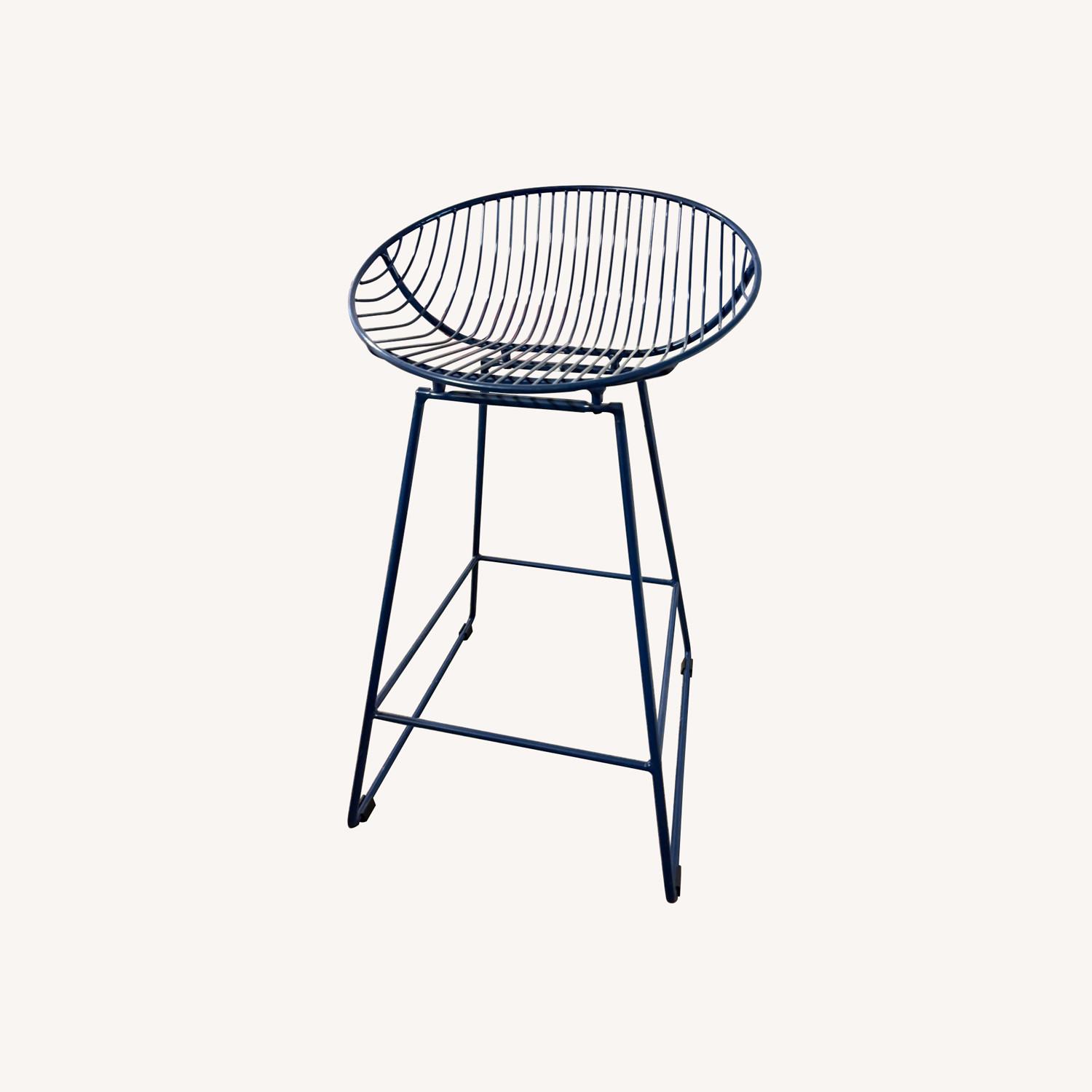 Seller's Notes:3 navy blue metal barstools. Counter height