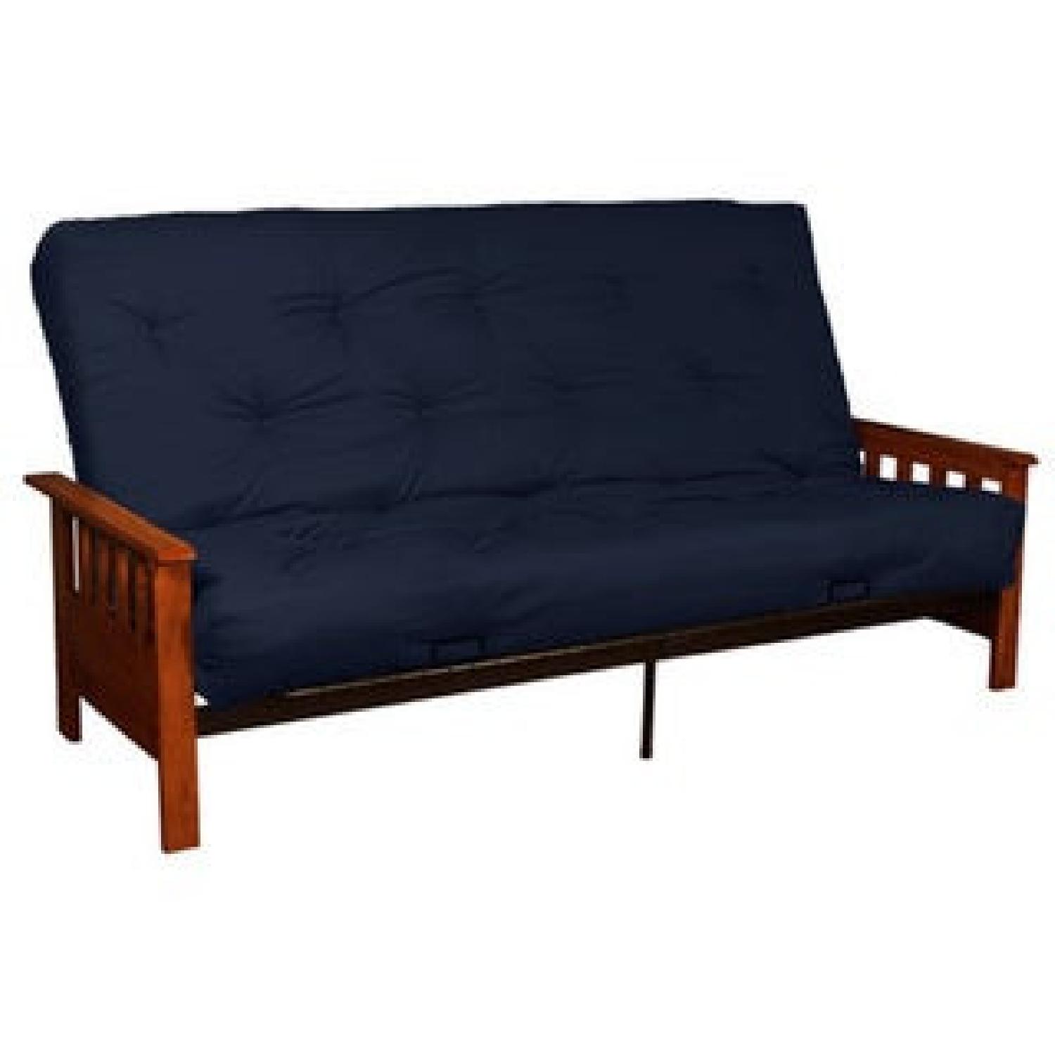 Navy Blue Queen Size Futon with Walnut Finish