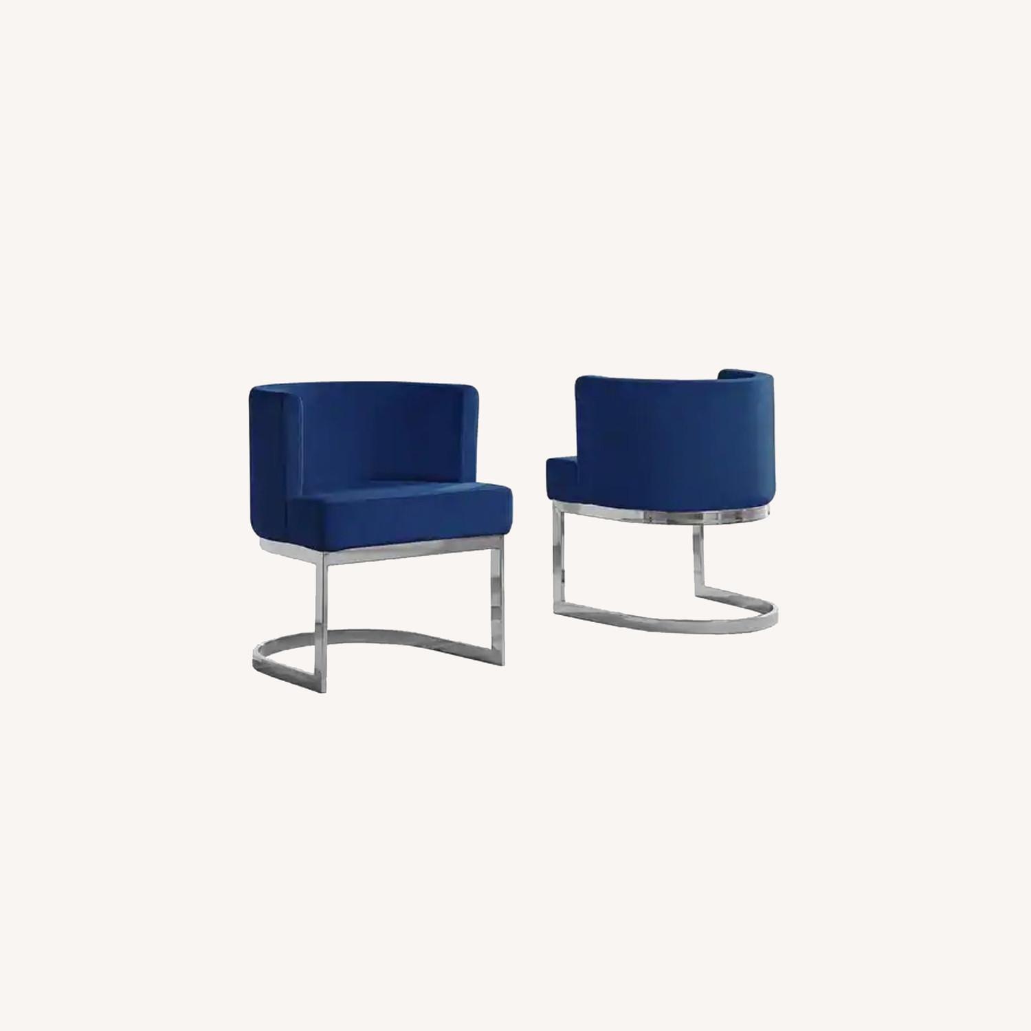Seller's Notes:Set of 2 gorgeous navy blue velvet chairs with chrome accents. Versatile chairs can be used as accent chairs in living room or as dining room chairs! Great set that will elevate the style of your space.