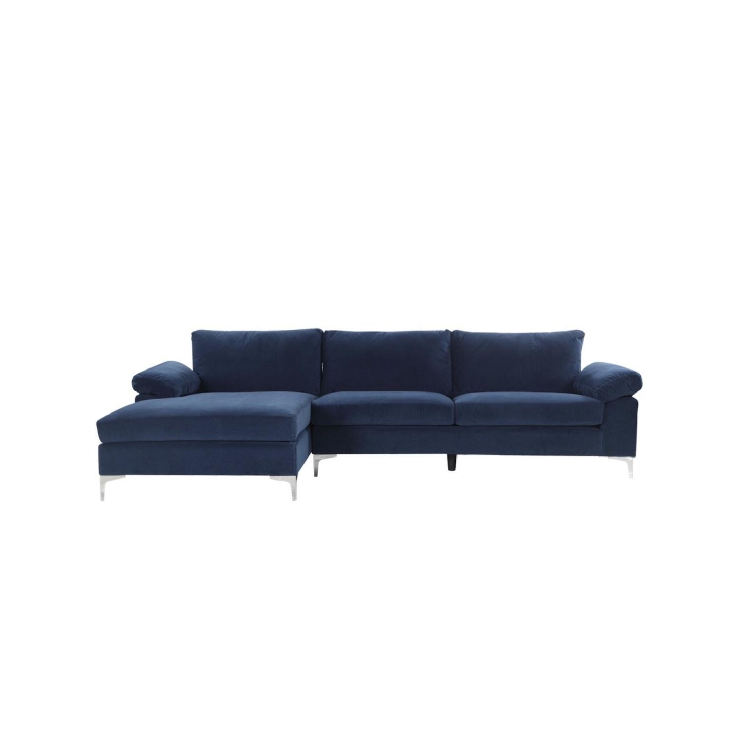 Navy Velvet L-Shape Sectional Sofa w/ Extra Wide Chaise