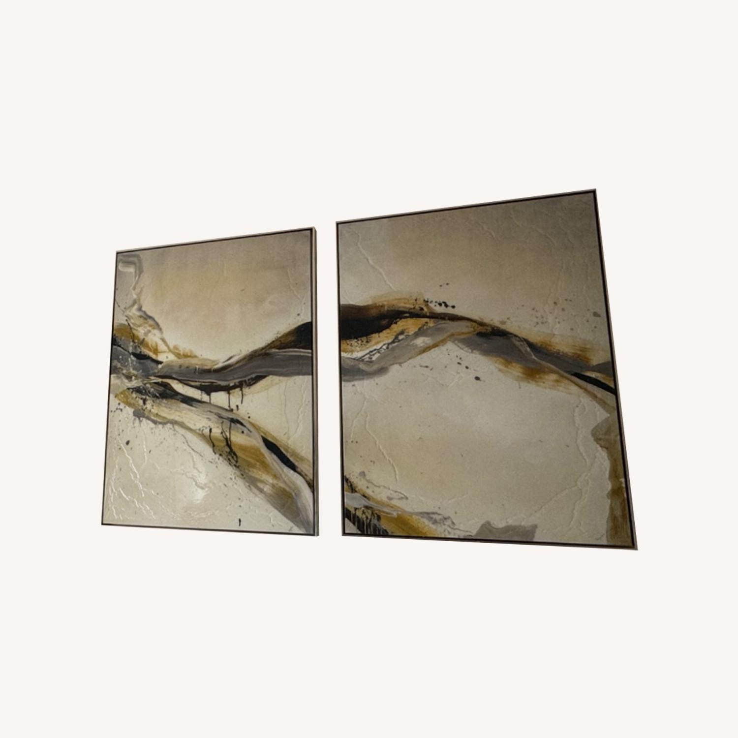 Seller's Notes:Moving and going with different style / design. Some cracks and blemishes but not too noticeable Two-Piece "Ascent" Giclee on Canvas Wall Art Set Handcrafted giclees overlaid with textural details. Wood frames. Sold as a 2-piece set; each, 41.5"W x 2"D x 54.75"T. Made in the USA. Boxed weight, approximately 70 lbs.
