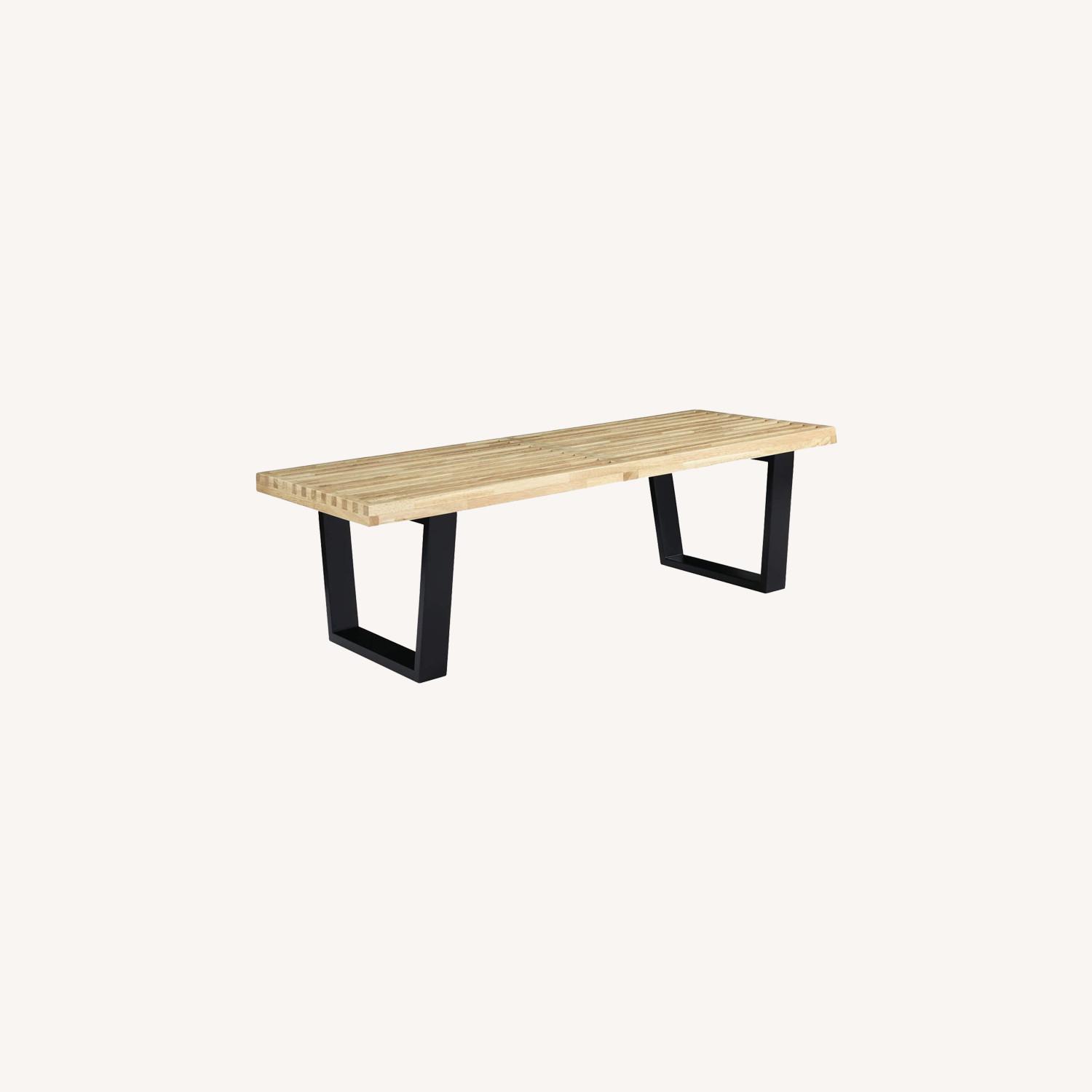 Seller's Notes:Inspired by the original design by George Nelson, this reproduction by Manhattan Home Design is made following the same specifications and materials as the original. A true achievement of mid-century and modern design, this piece serves equally as a bench or a low table according to your requirements and circumstances. With clear, straight lines this chair illustrates our approach to a reliable design combined with brilliant craftsmanship. Made with polished chrome or ebonized wood legs, this bench makes of any house or office a visual statement on mid-century and modern style. Its sturdy wooden bars are accurately divided to allow light and air in. Each wooden slat is sealed with a clear-coat finish and finger-jointed for additional strength, features that not only make this bench the perfect addition to any home, office, or public area but it has also proved to be one of the most versatile and functional pieces in our collection. Features: Inspired By An Original Design By George Nelson. Solid Wooden Slats With Clear-coat FinishSlats With Uniform Spacing To Allow Air And Light To Pass Through. Good For Both Indoor And Outdoor UseFinger-jointed Wooden Legs. Rubber Bumpers Included. Fit For Different Places & Purposes.