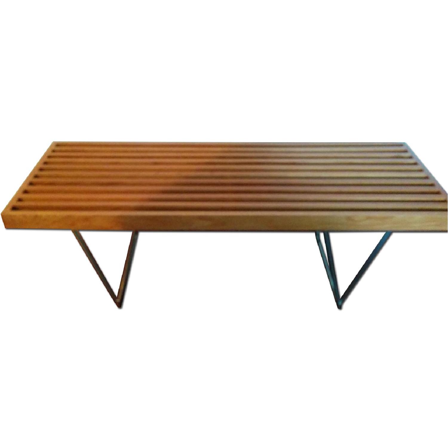 Seller's Notes:This is a replica of the Nelson Platform Bench. Wood construction, metal legs. Great condition. Needs to go by Friday. Plastic covering included. Dimensions: 48x15x18 Color: Natural wood