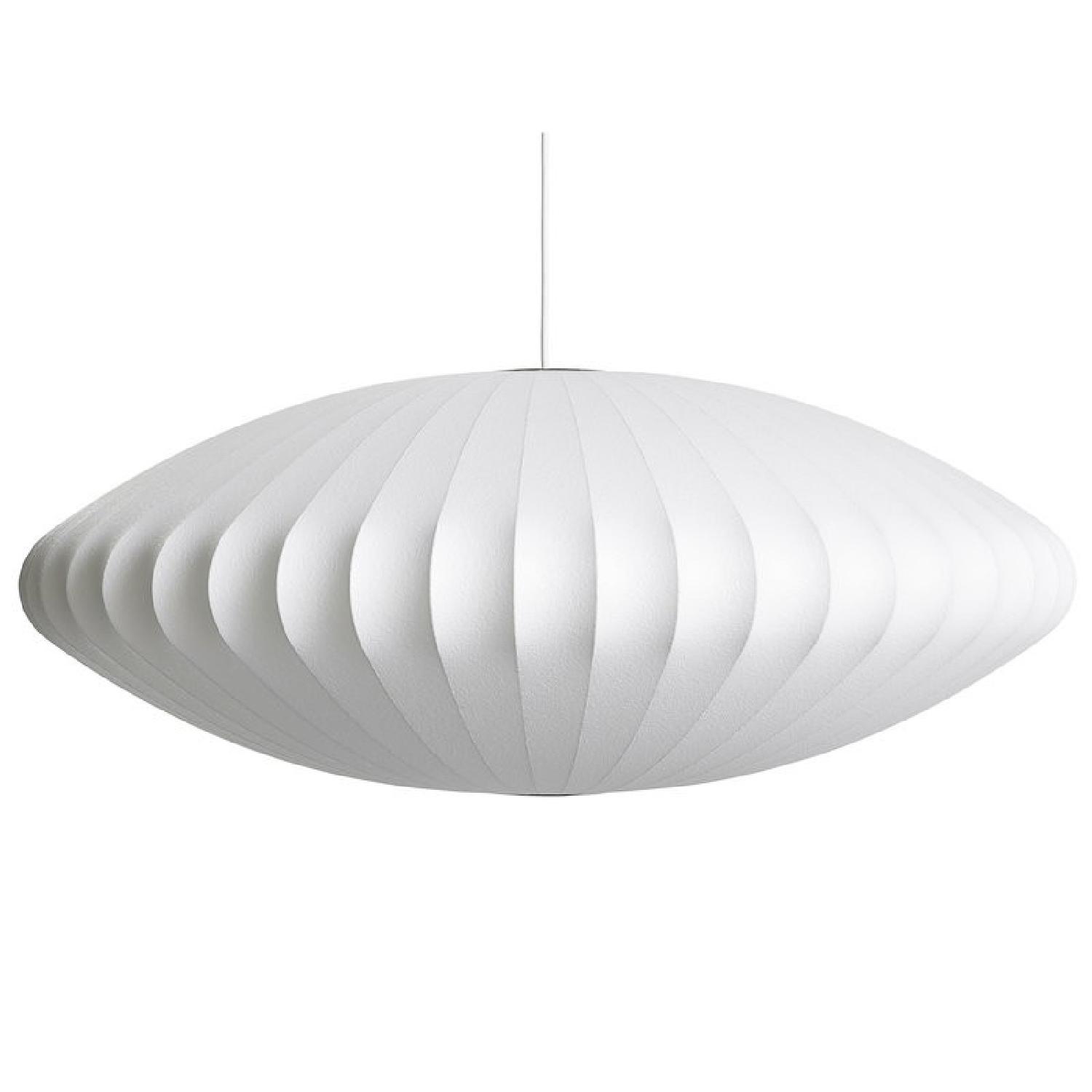 Seller's Notes:We got this 3 years ago and have loved it, but alas don't have a place for it in our new apartment. The bottom (i.e., what's visible in the room) is totally clean -- the only marks are on the top, which you can't see when it's installed. Here's the description from the Herman Miller website, which sells this exact model: The Nelson Saucer Bubble Pendant, a wide, saucer-shaped ceiling lamp, illuminates the space around it in soft, diffused light as it floats overhead. The timeless Nelson Bubble Lamps, originally designed in 1952, beautifully complement contemporary interiors.