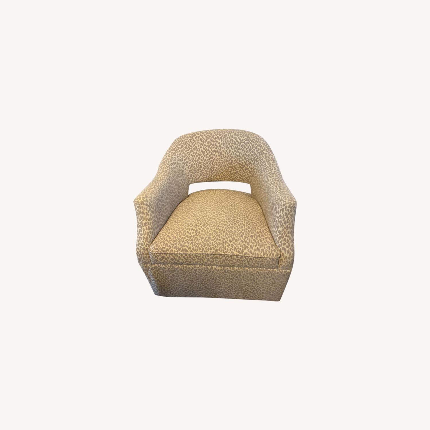 Seller's Notes:Nicole Miller swivel chair. Andrea swivel chair is the make. Leopard gray and beige print. In perfect condition, never been used. Measurements are 29 inches wide x 24 inches depth x 30 inches height x 23 inches arm rest height. Very comfortable chair with a semi cut out back.