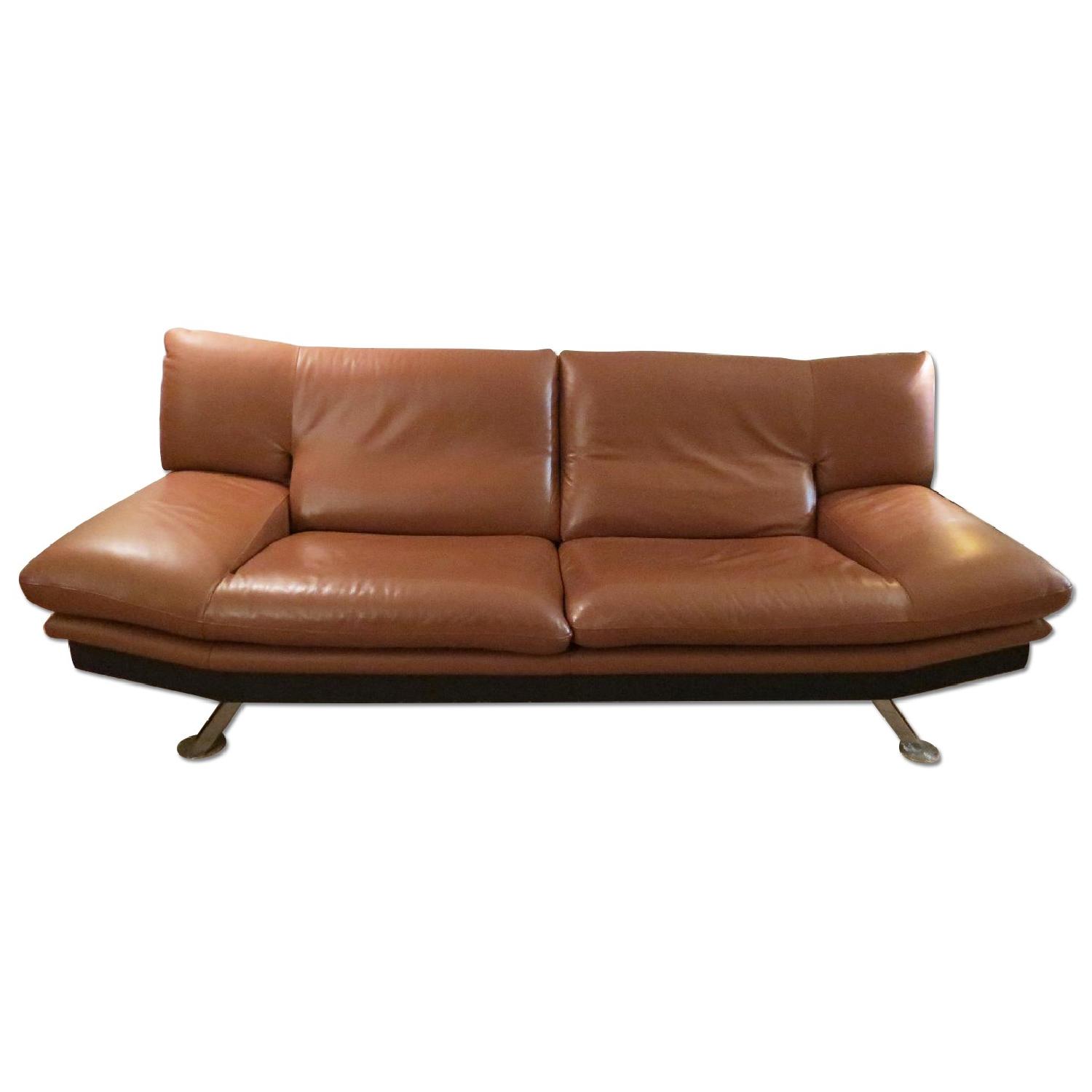 Seller's Notes:Contemporary Nicoletti (Made in Italy) Tan Leather Couch and matching love seat with chrome legs.