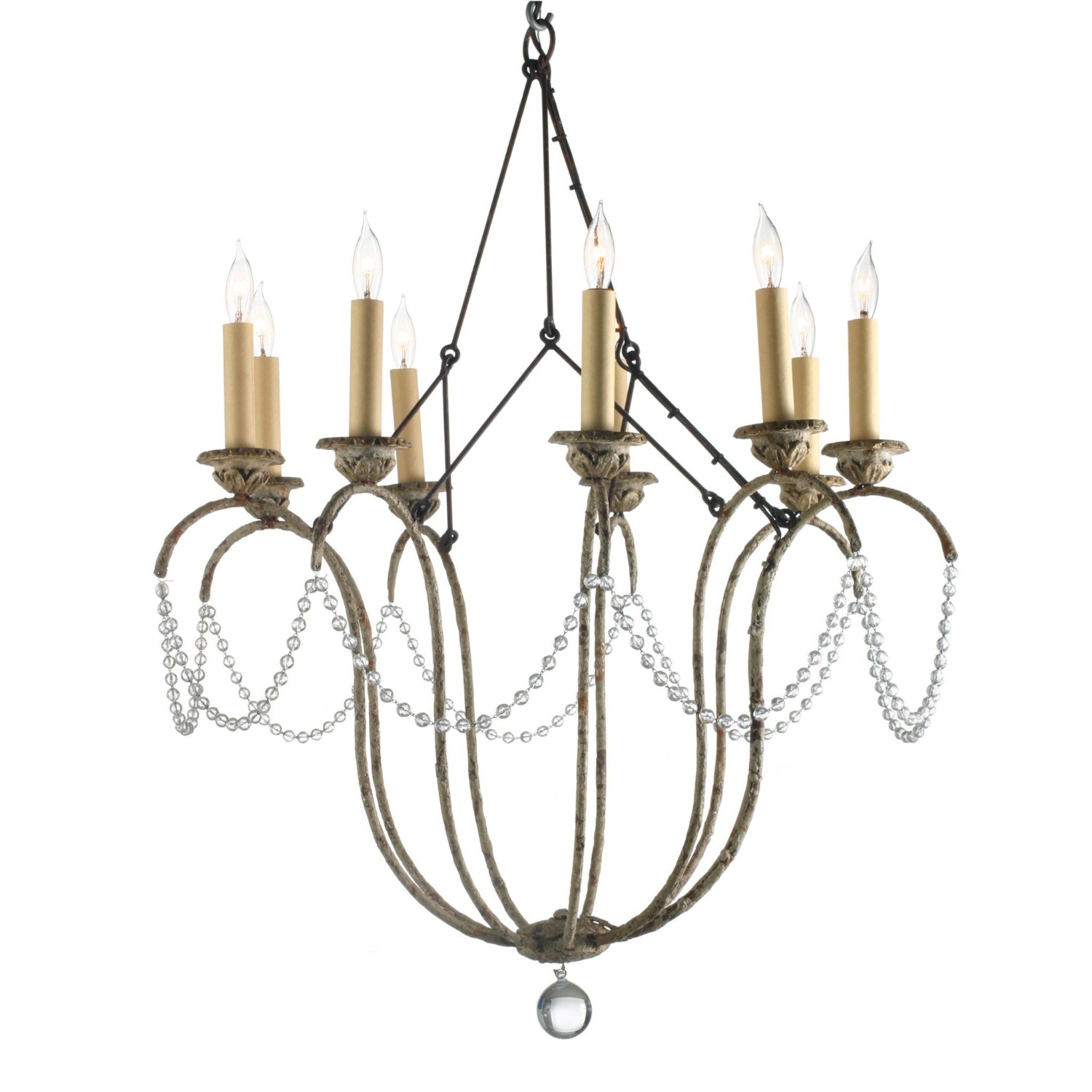 The Italian Chandelier’s simple, elegant outline is based on a voluminous 18th century Italian sconce. The suspension system at the top is our adaptation of work found in European churches, usually seen only in the backwaters of the central continent.