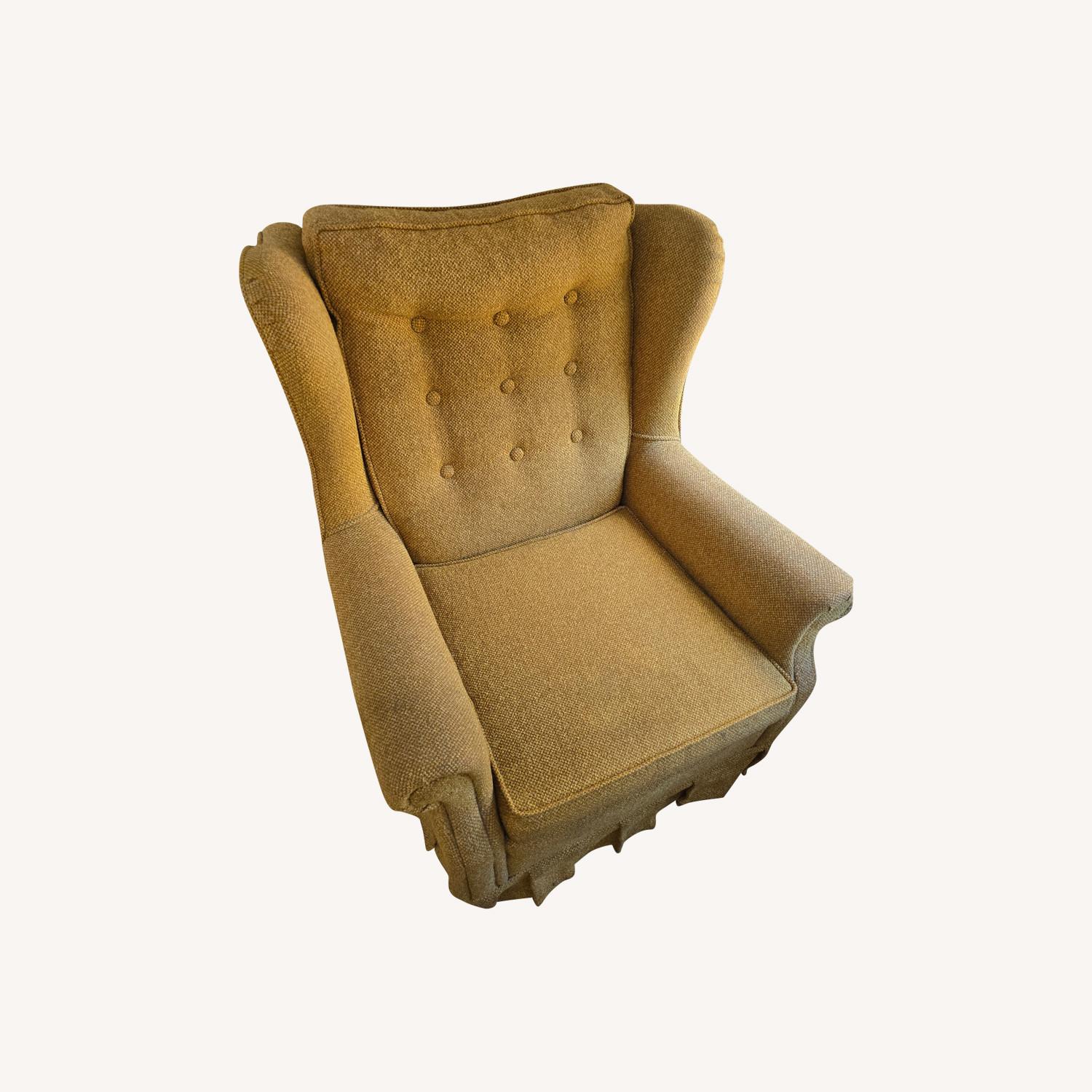 Seller's Notes:Great for brightening up a room with its warm yellow color. The upholstery fabric is sturdy, while it has some discoloration I don't believe it's torn anywhere despite a long life. We inherited this from a neighbor a few years ago and suspect it may have lived with a dog and/or cat but are not sure. But now we too are moving and cannot take it with us!