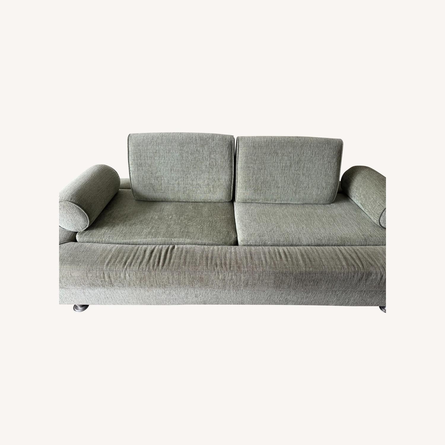 Seller's Notes:Found at an estate sale so I have no knowledge of the sofa's history. It ended up being too big for the space that I just moved into. Vintage Canadian Design Studio Mid Century Modern --Removable back and arm rests, can also be configured to turn the sofa into a chaise/day bed. Sleeping surface is roughly similar to a single mattress. --The seat cushions are also removable, but I think that's so the seat covers can be cleaned. --The fabric is is a mellow Lime-ish green. The upholstery is in excellent condition and has clearly been treated with TLC. The outer rim of cushioning is just as soft and comfortable as the center cushions, and its clever, yet simple design plus quality materials means a very restful sleep or --This sofa is really well made, classy, funky, and sturdy; the stitching is well preserved and showing no signs of wear or abuse. I'd love to keep her, but I really need something smaller. --The sleeping space is roughly the same size as a long single mattress. She's also very heavy so bring some muscle to navigate the stairs!