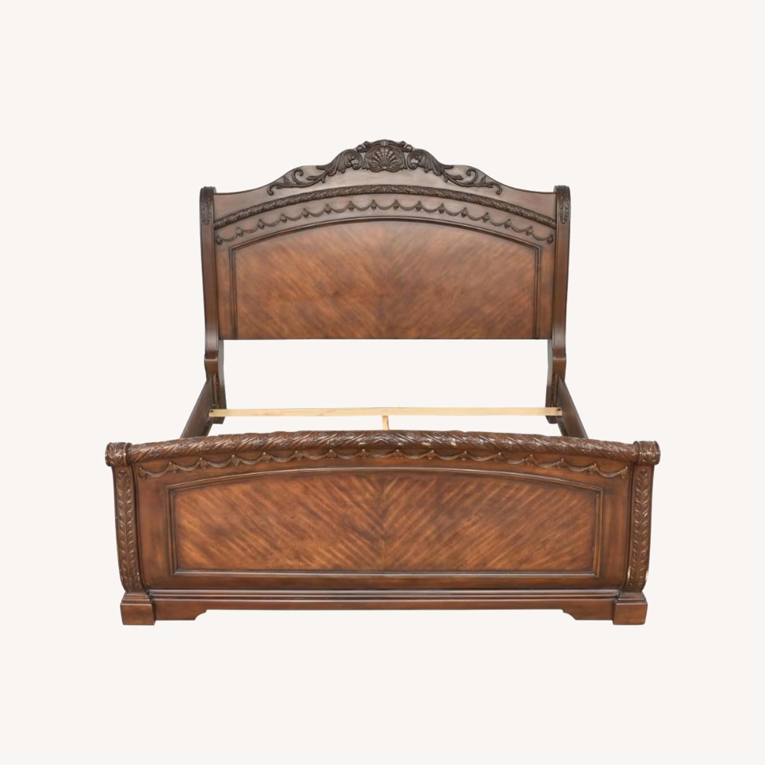 Seller's Notes:Gently used for 3 years in a pet and smoke free home. 2 Night stands and dressers available as part of the set. Available also as a set with 2 nightstands and a dresser. Pls. ask about pricing for a set and discounts. Premium hardwood construction and luxurious dark finishMAT Timeless design adds style and sophistication to any bedroom Footboard features select veneers and gorgeous ornamentation Grand headboard provides a sturdy and stylish top to this magnificent piece Dimensions: 78" H x 86.75" W x 96.25" D