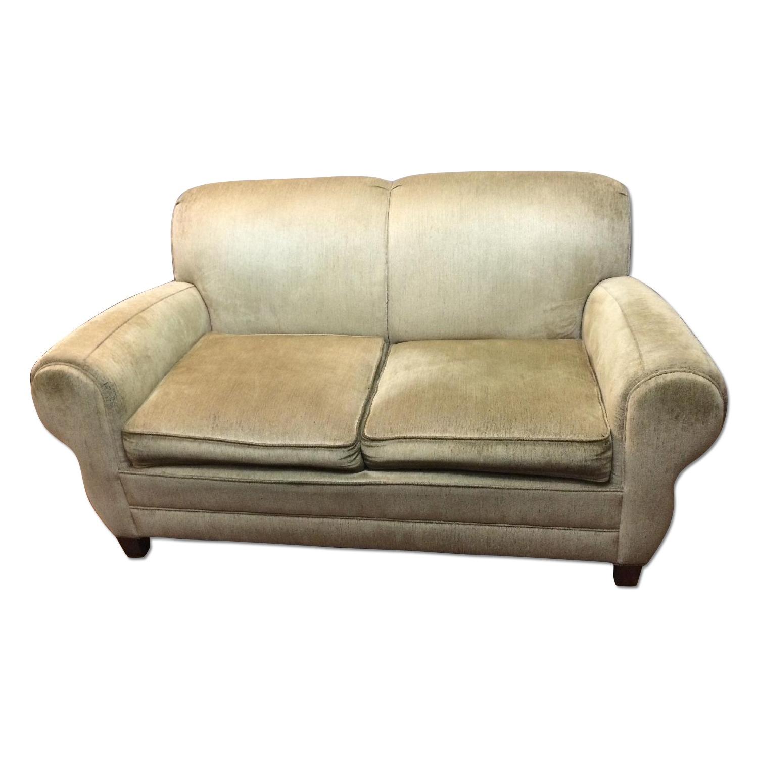 Seller's Notes:This is a light neutral green Norwalk loveseat handmade in the USA. The material is a low pile chenille with minor wear. Although this loveseat is around 10 years old, you'd never know it and it has many more years left in it. Moving to a larger apartment and need a larger couch, but this loveseat is perfect for any size apartment.