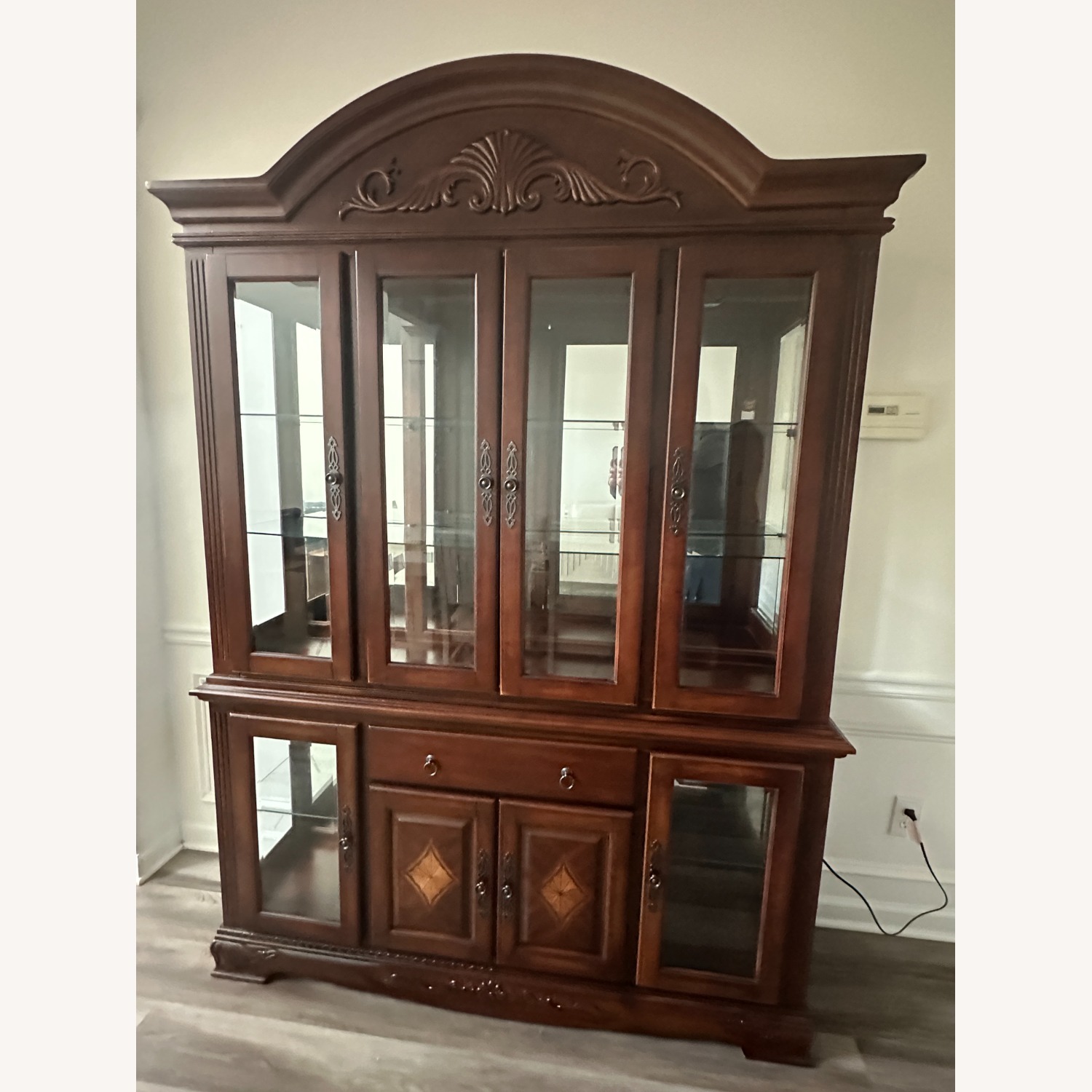 Seller's Notes:Greetings! I got this beautiful decadent china cabinet delivered in April of 2023 from 1stopbedrooms. It was a gift for my mom and she loved it even though she did not use it (haha). She moved to a different home and left it in my home. Aesthetically, it is very pleasing but since my walls have been painted, it does not really match the look of my home. I believe whoever wishes to purchase this gorgeous dark cherry colored china cabinet is going to be extremely satisfied with their purchase at such a nice discount. It does not have any damages, scratches, blemishes. It is well kept/maintained; may only see a little dust on the outside. It has a lot of storage space and even includes an electric plug to turn on lights inside of the hutch. Two words to describe this item: satisfaction guaranteed!