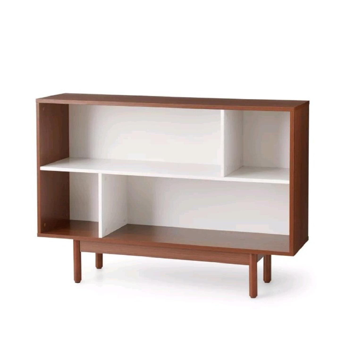 Seller's Notes:I purchased this item last week and assembled it, but it doesn't fit in my space. And you can remove the white backing if you prefer an open shelving look. Fabulous Mud Century style! About this item Features 4 Divided Compartments Solid wood legs Assembled dimensions: 47.8"W x 11.8"D x 33"H