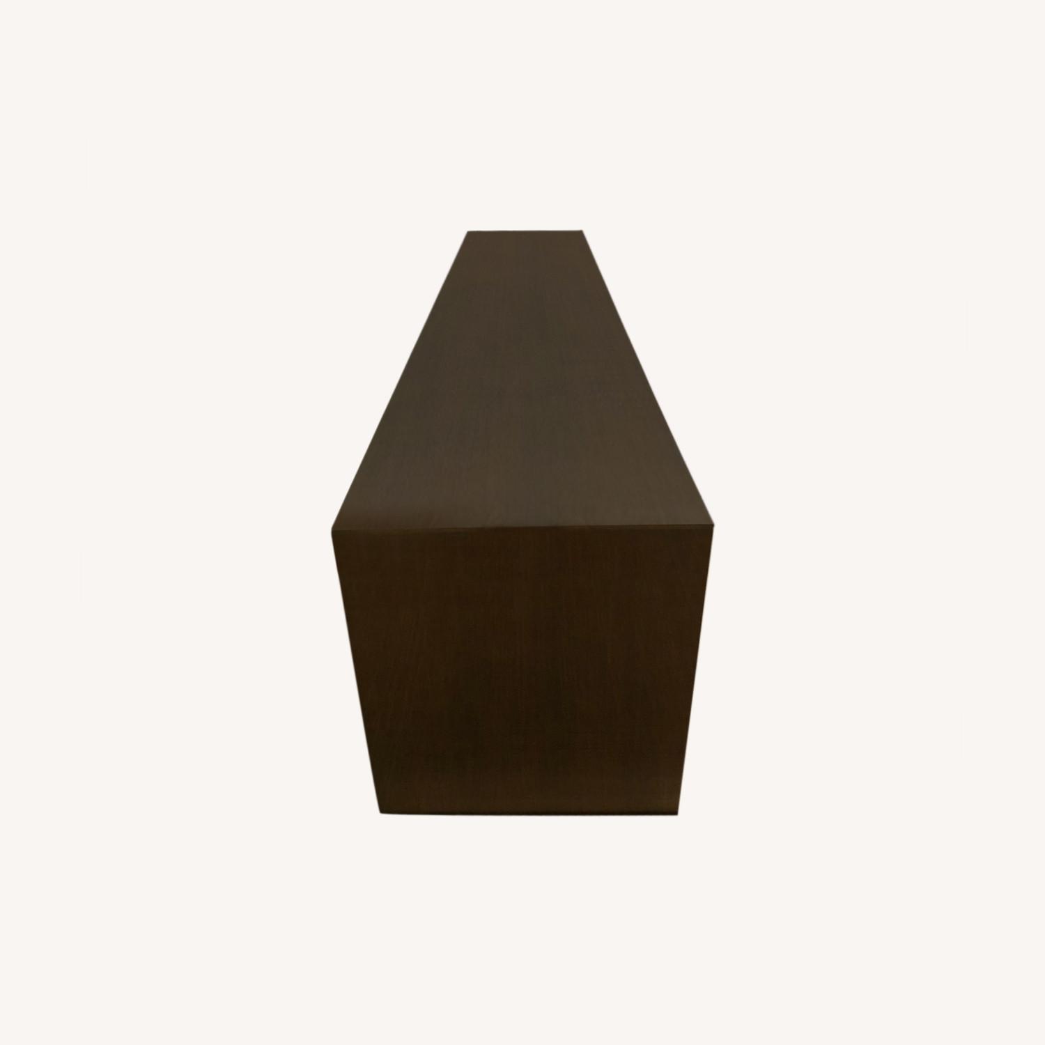 Seller's Notes:Large Credenza FWCC-7229-W-V NUCRAFT F Flow Conference Height Credenza, 72"W x 20"D x 29.5"H, Venee Standard Veneer Species Options 33 OPT: Mocha Walnut MT OPT: Matte Finish (Recommended) Flow Credenza Lock Option 54" - 72" ~ *** No Door Lock Option ***