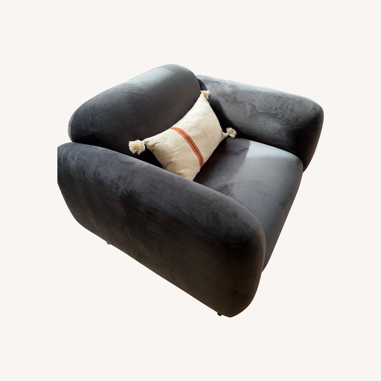 Seller's Notes:Black velvet Lounge Sofa from Nuevo. Brand is out of business but it was a high-end Furniture brand. Chair is comfy and in impeccable conditions, no stains or scratches. Selling as we changed a few things in our living room display and it no longer fits. Bought it a year ago for $1200.