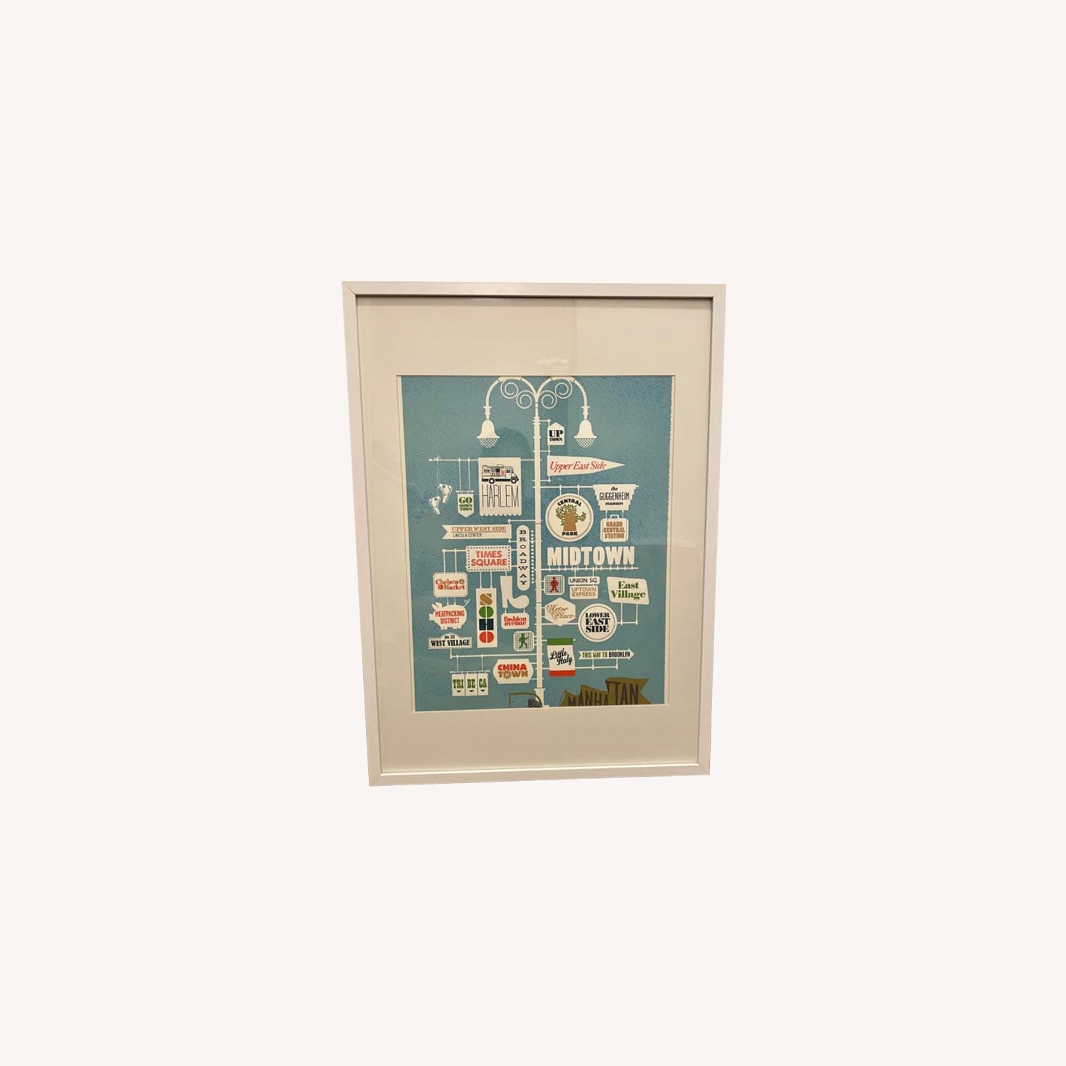Seller's Notes:Beautiful, framed, matted NYC artwork. White and light blue tones go with any room. Purchased at Pink Olive which is a local NYC boutique. Very sturdy, in excellent condition, no scratches and wire hanging included.