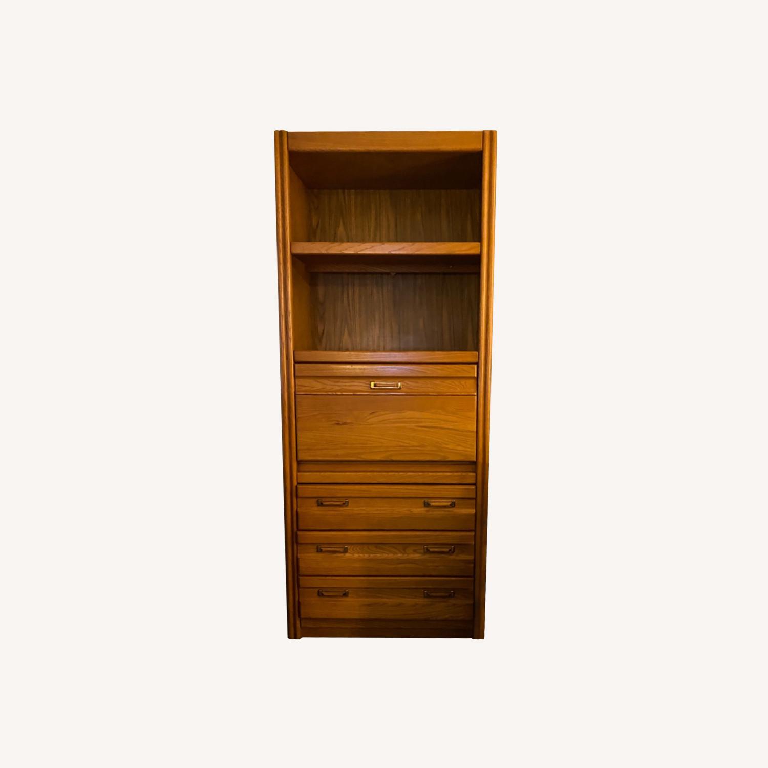 Oak Unit w/2 Draws, 1 Pull Down & 2 Shelves on Top