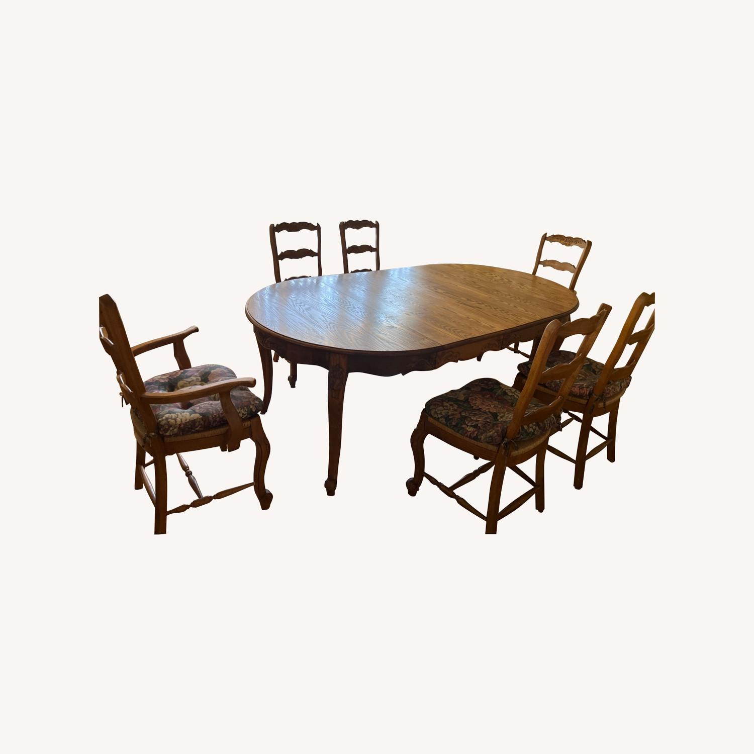 Wear and tear details: interior marks, Oakwood, well-maintained, with 2 arm chairs and 4 regular chairs, well-kept