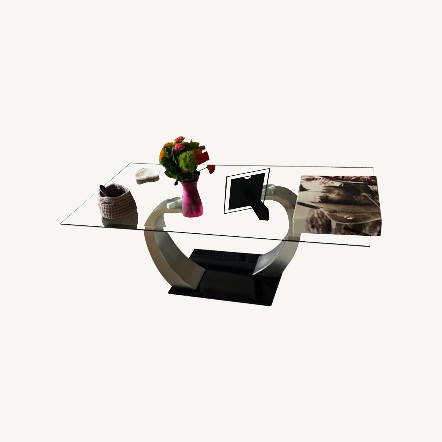 Seller's Notes:Modern sleek glass/metal coffee table. New