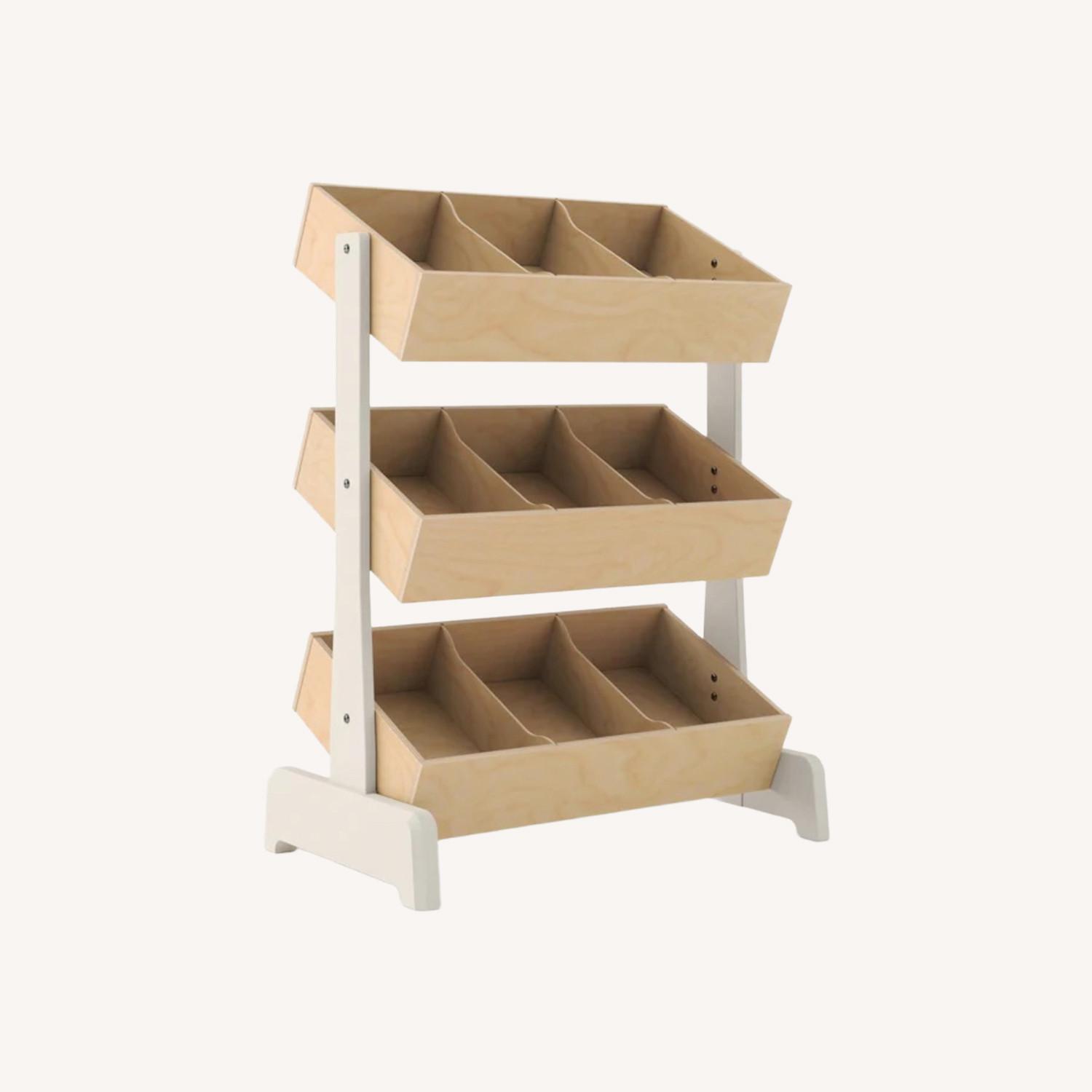 Seller's Notes:Selling these two Oeuf toy shelves in excellent condition in the walnut wood, which is now discontinued. They are very handy and attractive looking additions to any play area or living room. Served us well, but will not fit nicely in our new space. The shelves can be adjusted to sit straight (like we have it in the photos) or at an angle (as shown on the website) for easier access/display.