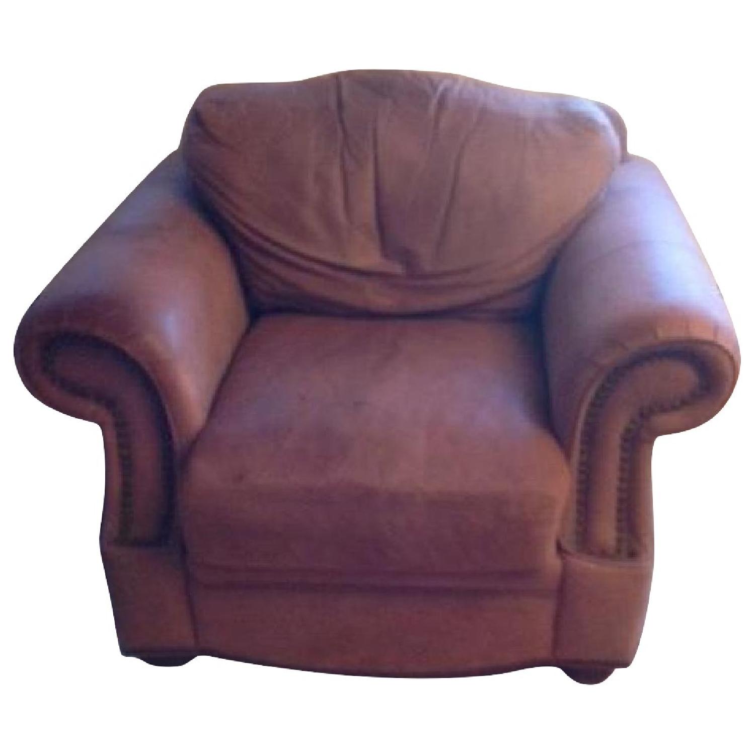 Seller's Notes:Custom made leather reading chair wraps you in comfort from the first page. Sturdy and hand-made, this reader is a contemporary take on the overstuffed club chair with its gentle, yet classic curves, fashionable studded arms and beefy but pleasing proportions. This is a great addition to any den or man-cave. Due to a down-sizing move, this grand old man is being reluctantly released by its current and only owners.