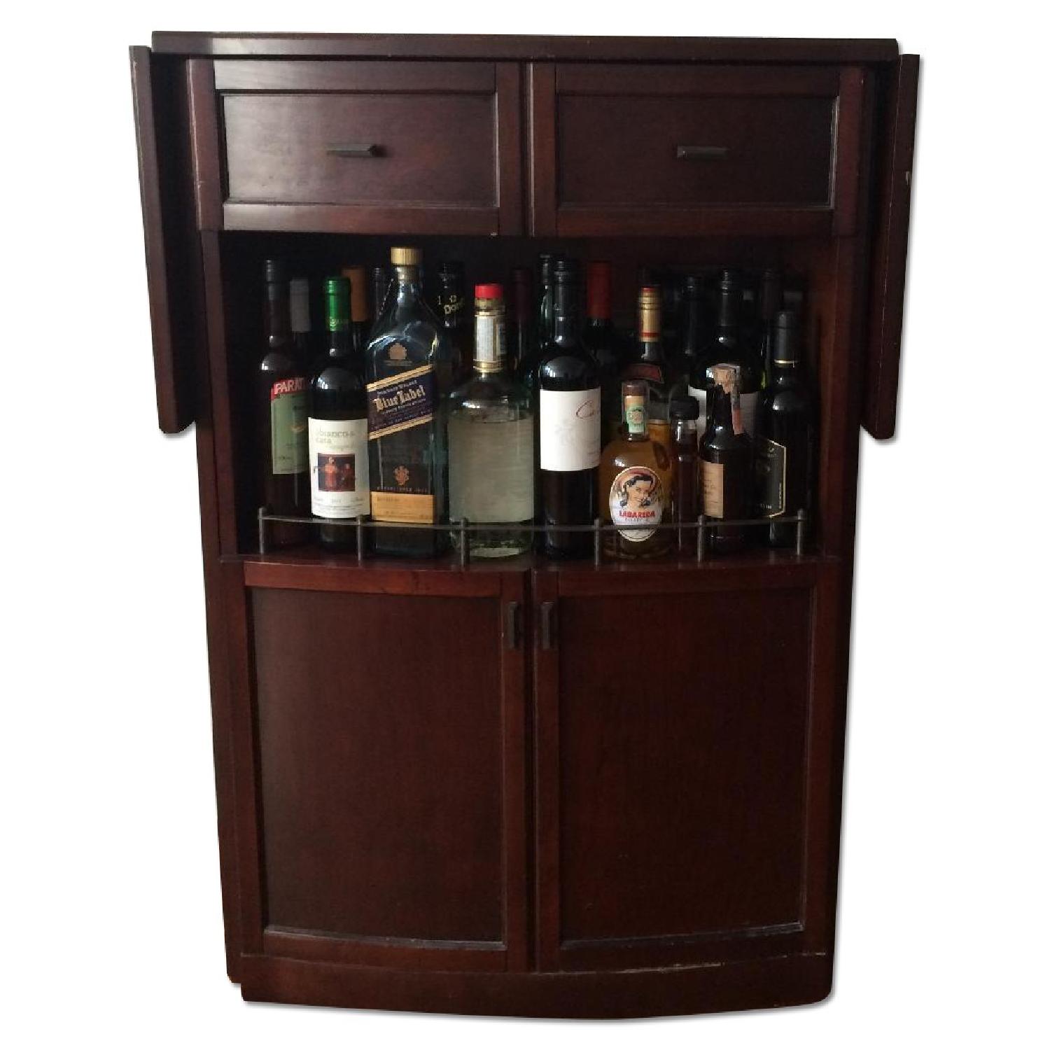 Old School Cherry Brown Fold Out Wooden Bar Cabinet