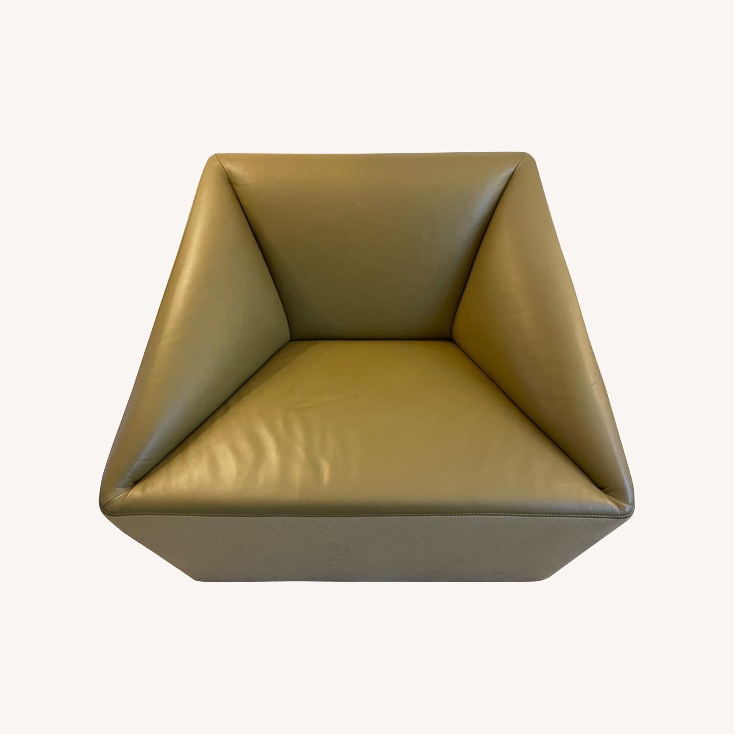 Seller's Notes:Two olive green leather COR (https://www.cor.de/en/furniture) chairs in like new condition. One chair has a zipper issue (pictured), but it’s an easy fix.