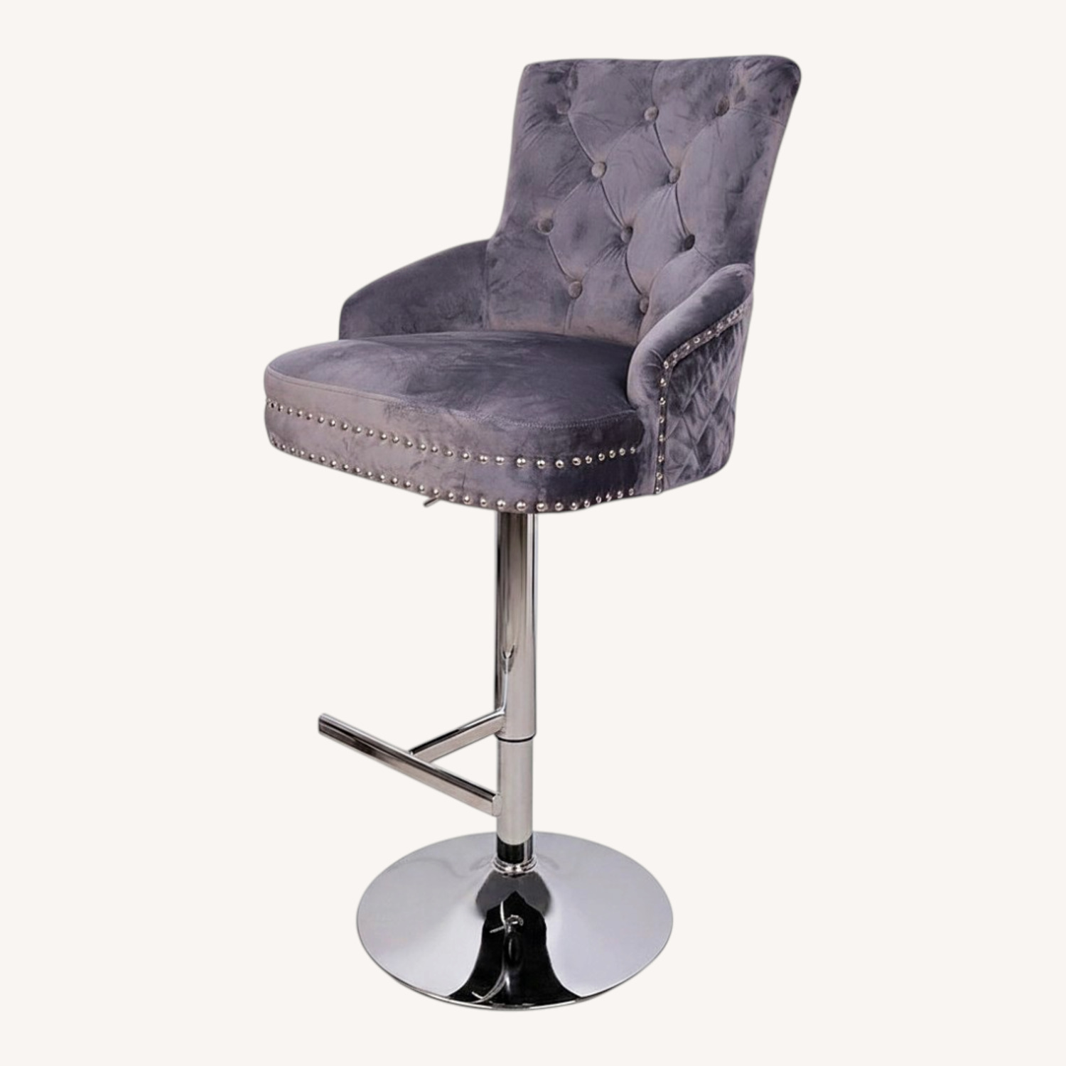 Upgrade your home or commercial space with this Tufted Velvet Barstool Adjustable Lift. Made from premium materials, this barstool is designed to last. The classic look easily complements any decor style. With a 360° swivel, electroplated lion head pull tab, and adjustable seat height, this chair is both functional and stylish. The chair is ergonomically designed with a backrest and footrest for added comfort. Suitable for a wide range of scenarios such as barber shops, coffee shops, bars, pubs, and homes. Assembly is required and all accessories are included.