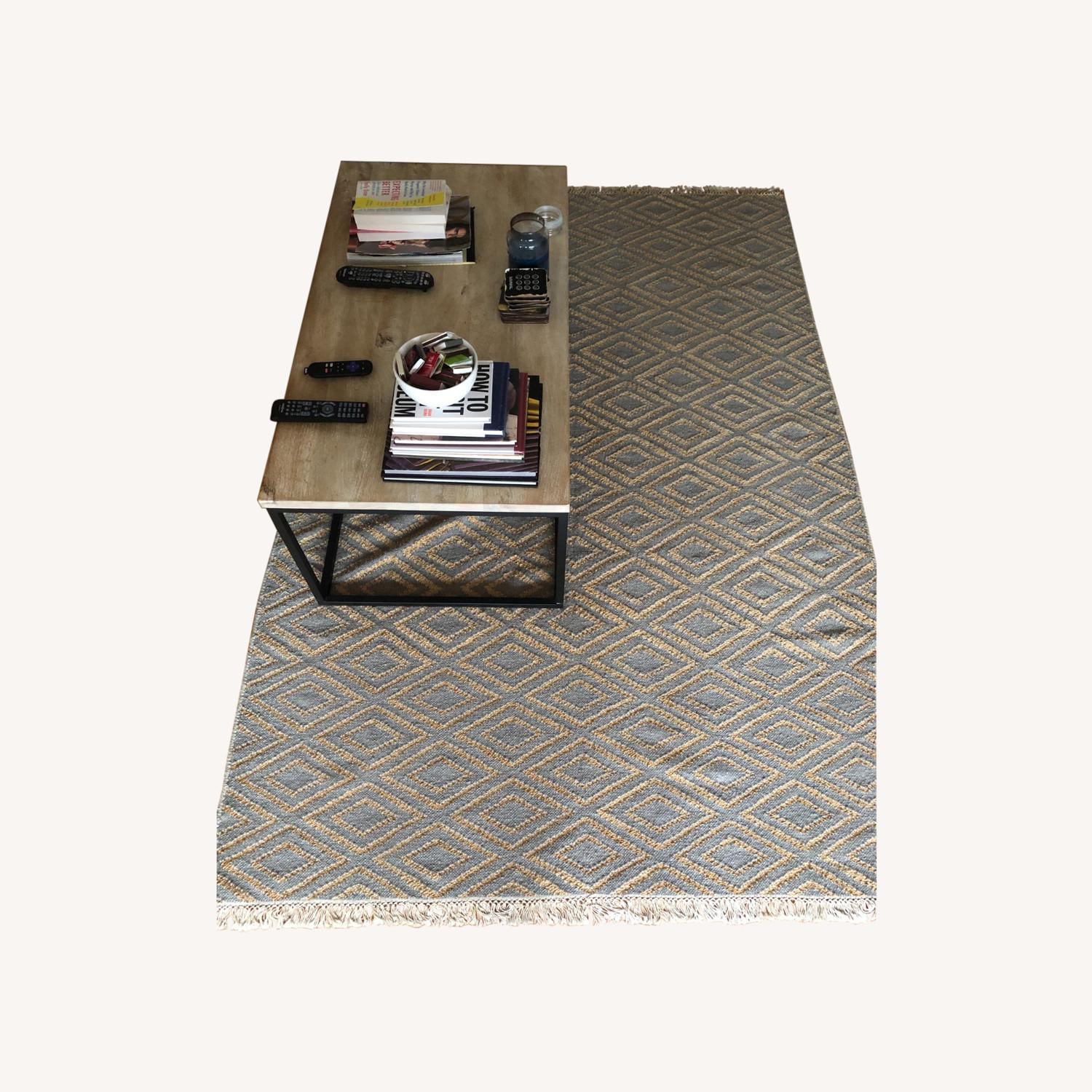 Seller's Notes:This rug has served me well for the last five years but moving to a new place where it doesn't quite fit in with the decor. It's from One Kings Lane, gray and gold diamond pattern with fringe on the ends. Great condition, no stains, pulls, or anything of the like. It deserves a good home!