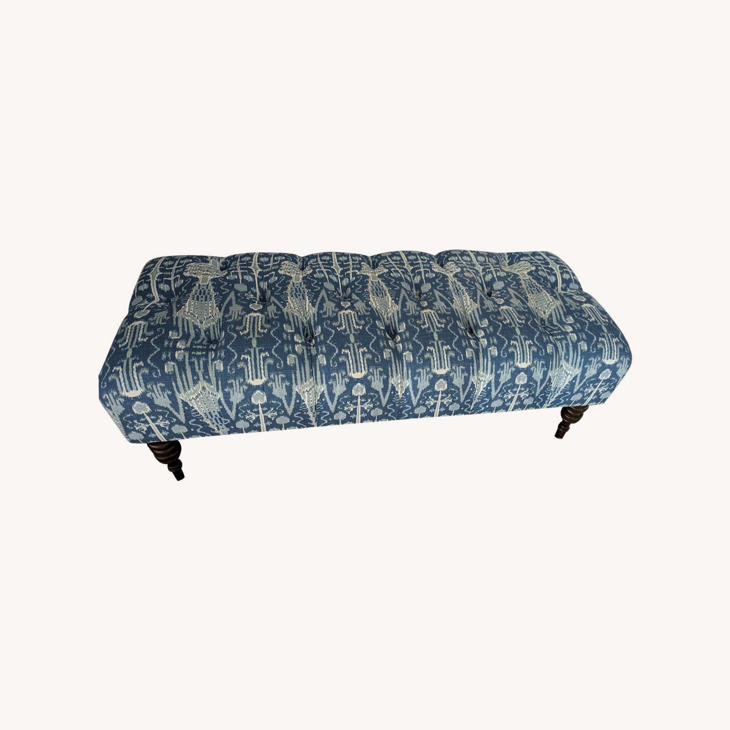 Seller's Notes:Was listed as the "Stanton Tufted Bench, Cobalt Ikat" on One Kings Lane - great piece for entryways. A few scratches on the legs (shown) but the cushion stuffing and fabric are in great condition.