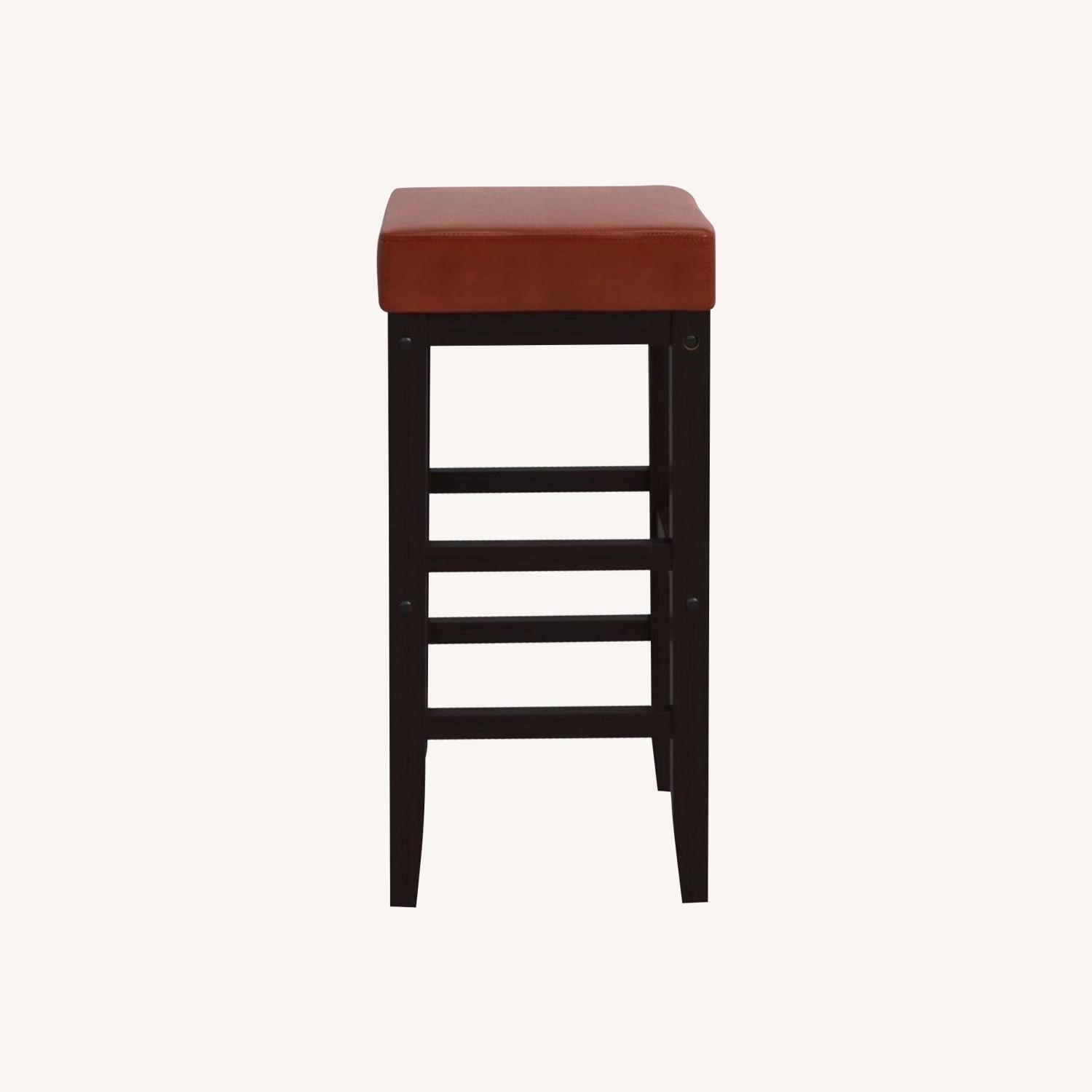 Seller's Notes:Clean-lined frame crafted from solid wood with rich orange soft leather cushions. Very good condition.