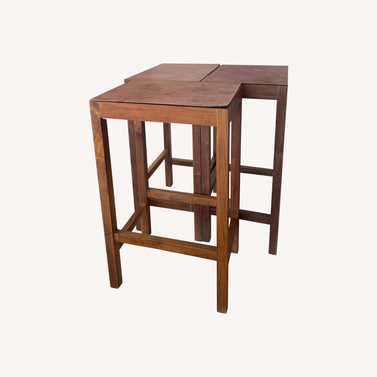 Seller's Notes:Beautiful and well-made bar stools from Organic Modernism, featuring solid walnut wood and leather seats. They've been lightly used and show a few small scratches from a recent move, but overall they’re in great shape and super sturdy.