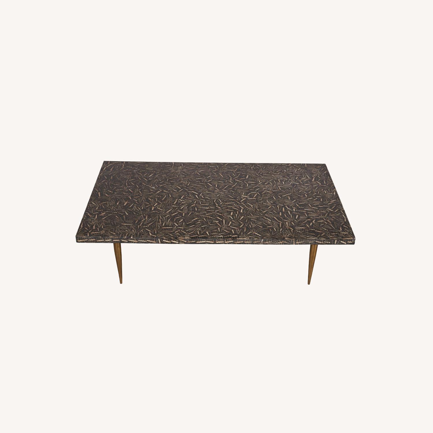 Seller's Notes:A unique low-profile, mid-century style coffee table. The Del Mar features a rectangular resin printed top inspired by natural fossils and polished brass peg legs. Beautiful table, we just wanted something a bit longer. Just bought it only a few months ago. If any scratches they are all minor and can barely be visualized.