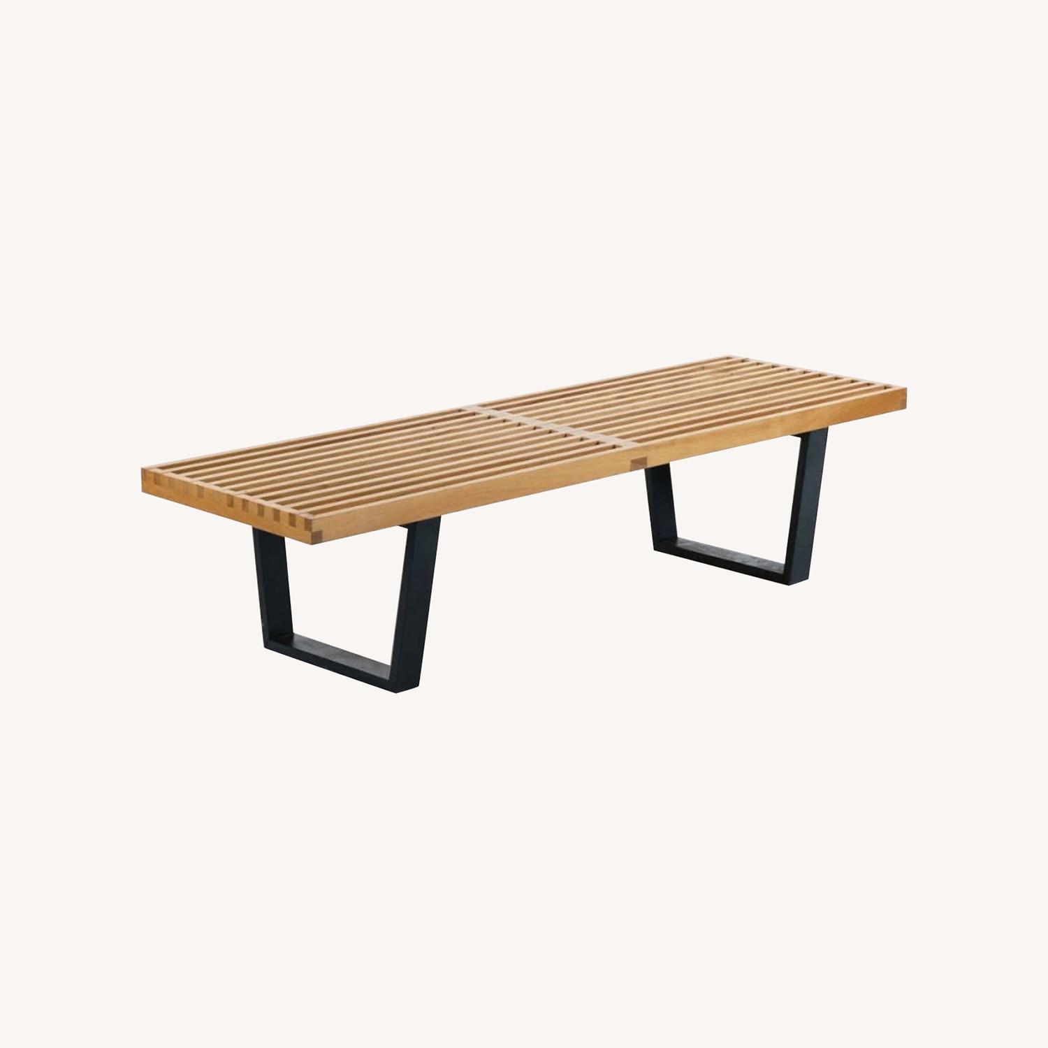 Seller's Notes:Incredibly vintage and rare: Organic Modernism's take on the Nelson bench. Beautiful interlocking maple wood on top of sleek black legs. My most prized possession. Great condition. A great zen and minimalist piece for any house.