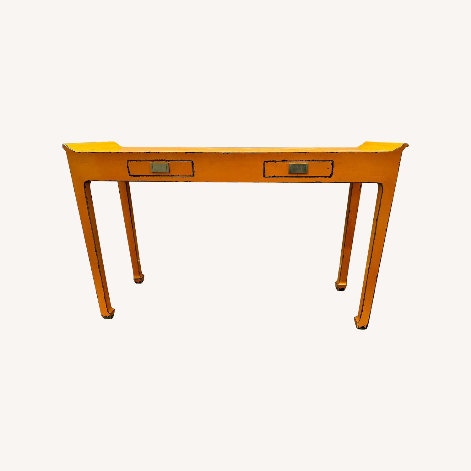 Seller's Notes:Distressed orange side table. Two drawers - great for mail, keys, wallet. In great shape - light but sturdy.