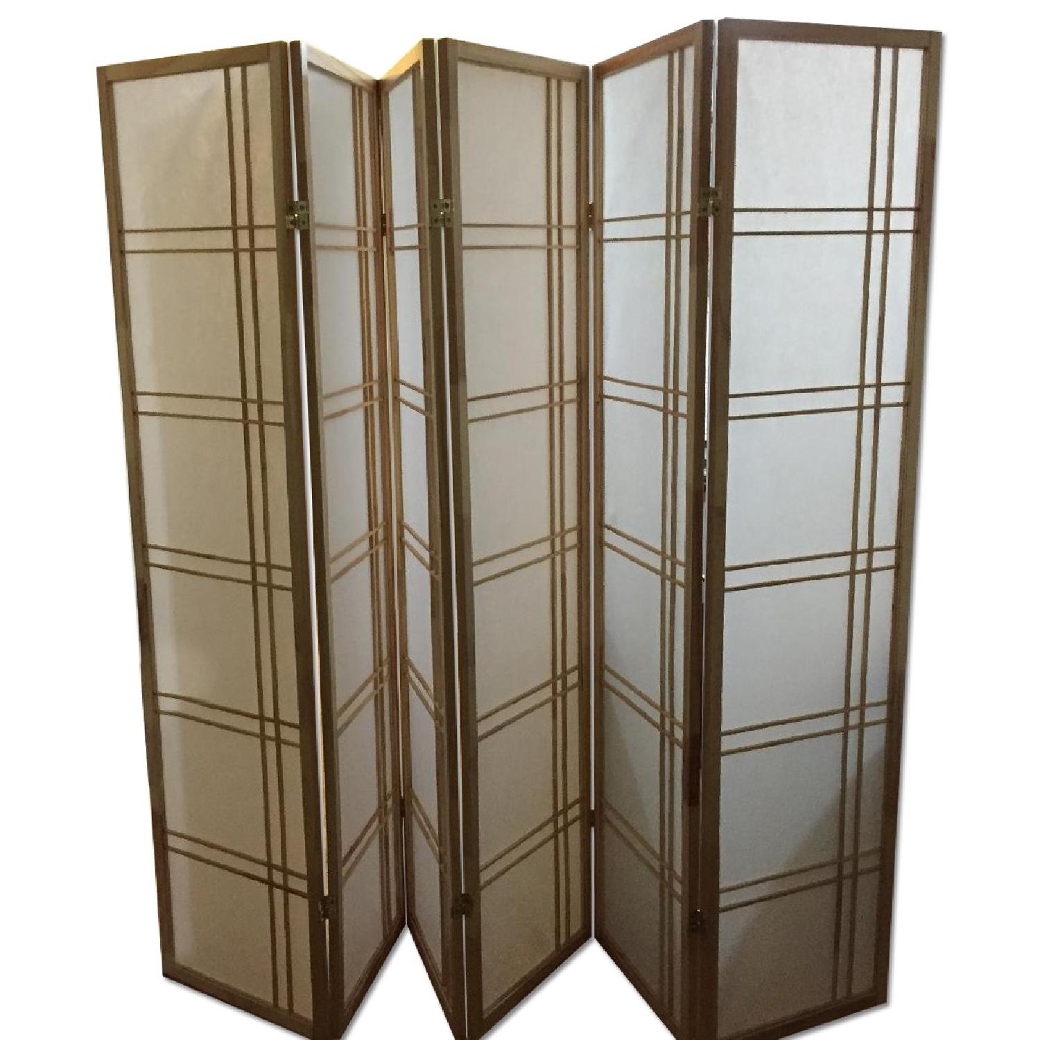 Seller's Notes:I am moving and selling an Oriental Furniture 6 ft. Tall Double Cross Shoji Screen - Double Sided. It is 72" tall and has 6 panels, each 17" wide. When unfolded it is about 86" wide. Perfect as a room divider for a studio or large room. It is in good as new condition. More information about the item can be found here: http://www.orientalfurniture.com/oriental-furniture/SSDXDS.html?Category_Code=shoji-screens