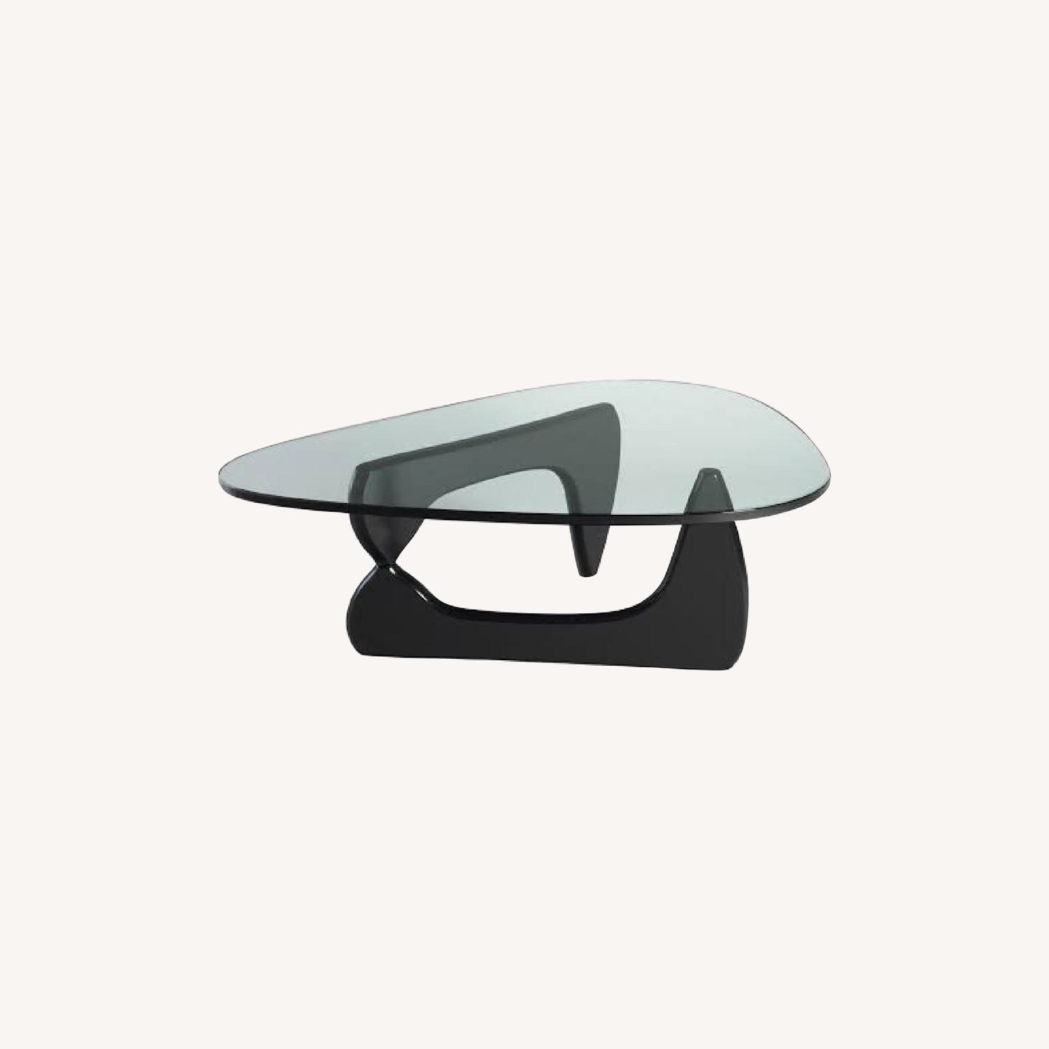 Seller's Notes:This is an original Naguchi Coffee Table made for Herman Miller. It has two stamps of authenticity. The black legs have some nicks and scratches but you won’t see any of it with the glass on top.