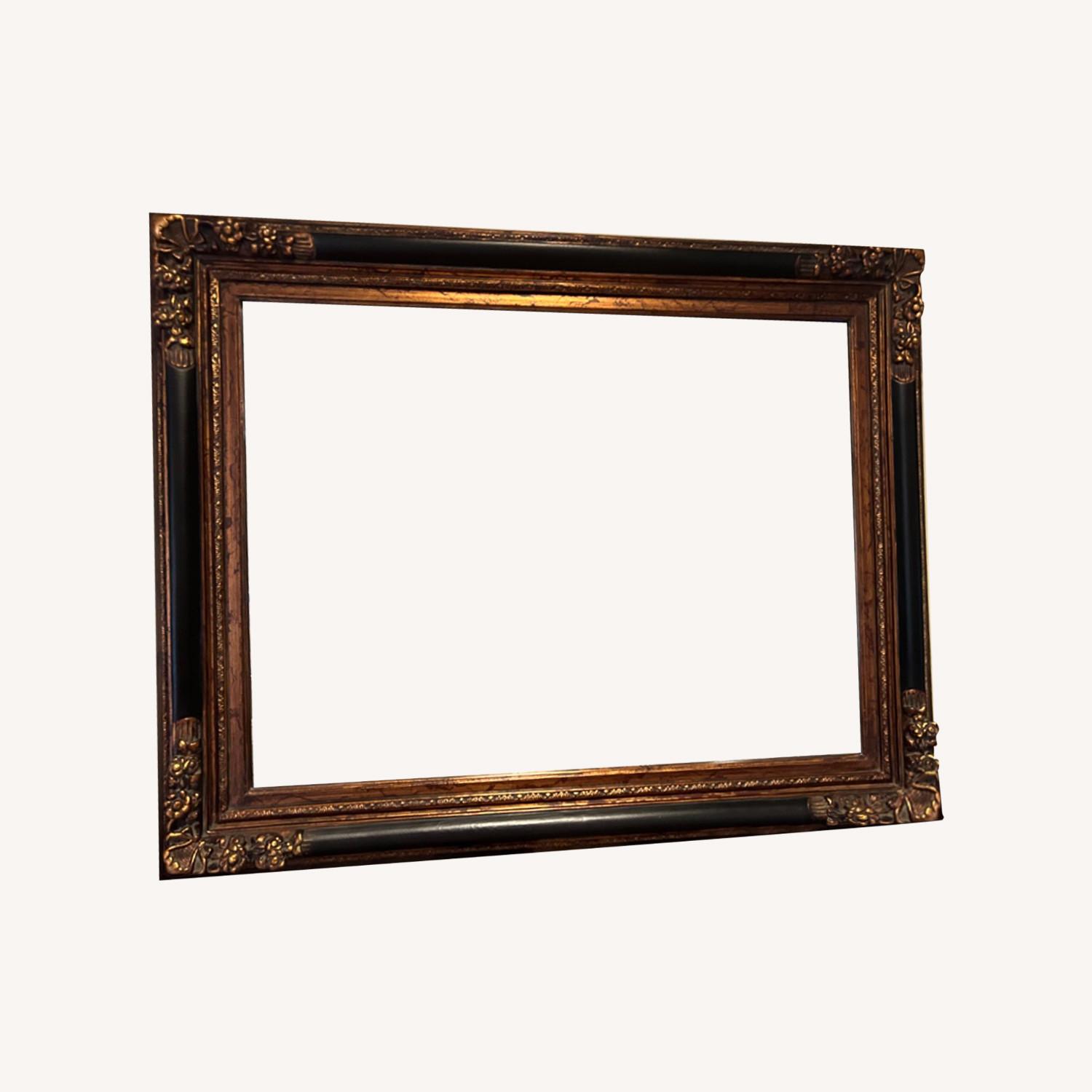 Seller's Notes:Antique large black mirror with ornate gold details on corners. In excellent condition.