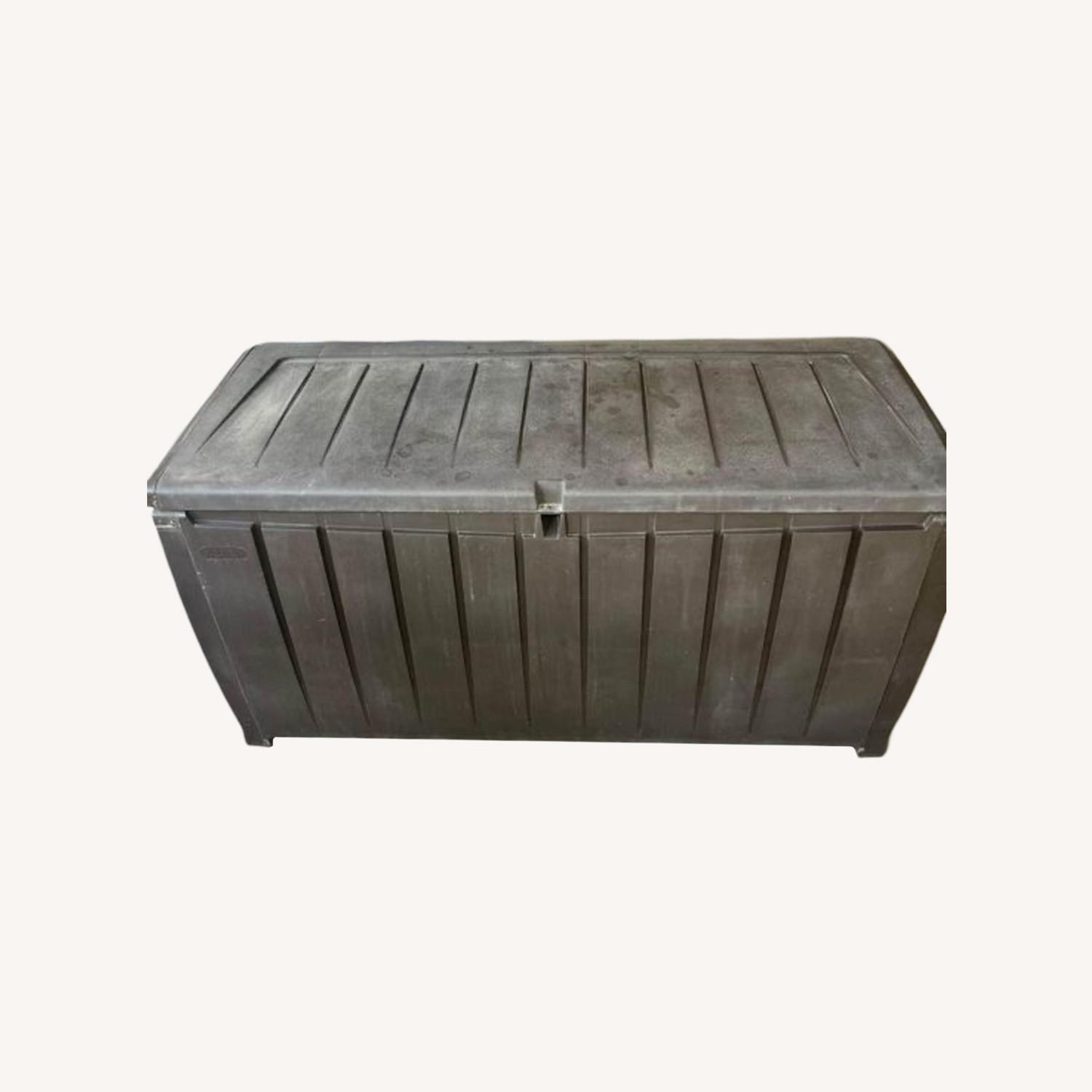 Seller's Notes:Barely used brown storage bin for garage or outdoor use. Used to hold outdoor furniture cushions. I'm moving and no longer have room for it.