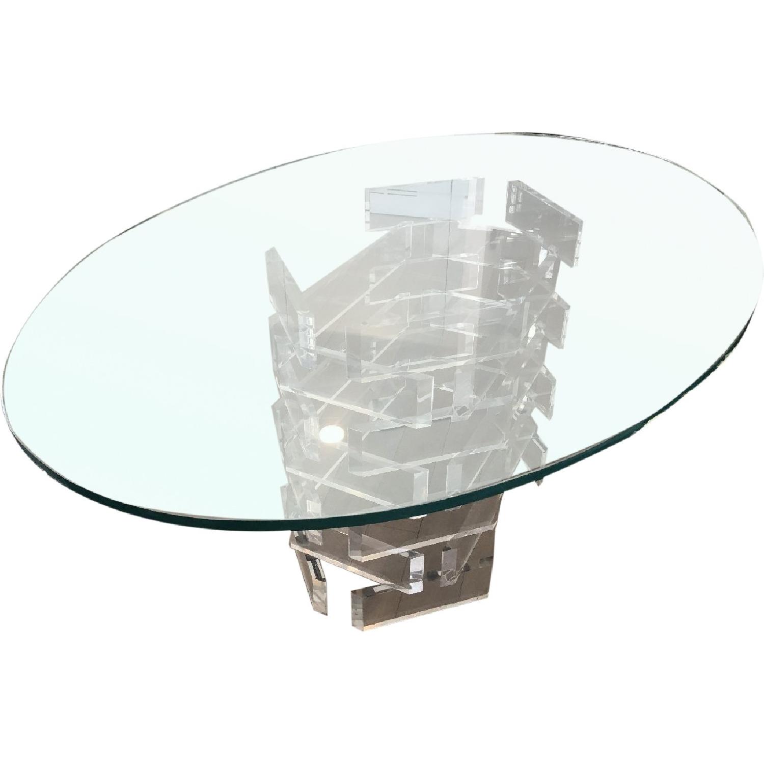 Seller's Notes:oval glass table with plexiglass pedestal base. these are two separate pieces.