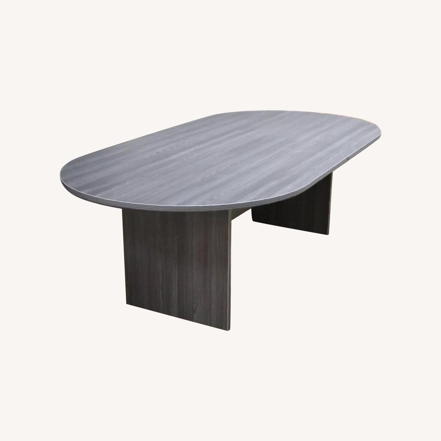 Seller's Notes:This Beautiful Grey Oval Conference Table with 6 chairs is in perfect condition with no wear and tear. It was unpacked and kept in the office for 2 months before the office had to close.