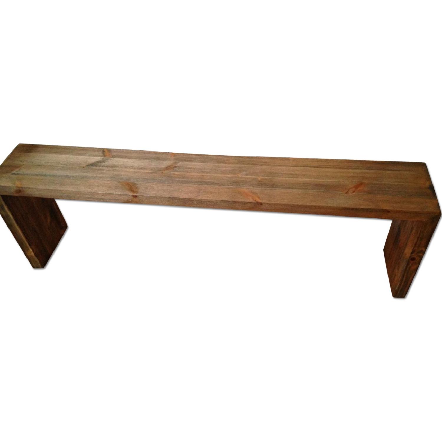 Seller's Notes:This bench is perfect for dinner parties! I bought it on Overstock less than a year ago for $214 dollars! It has a rustic, reclaimed look and it can comfortably fit 3 people. Dimensions are 18 inches high x 60 inches wide x 10.25 inches deep!