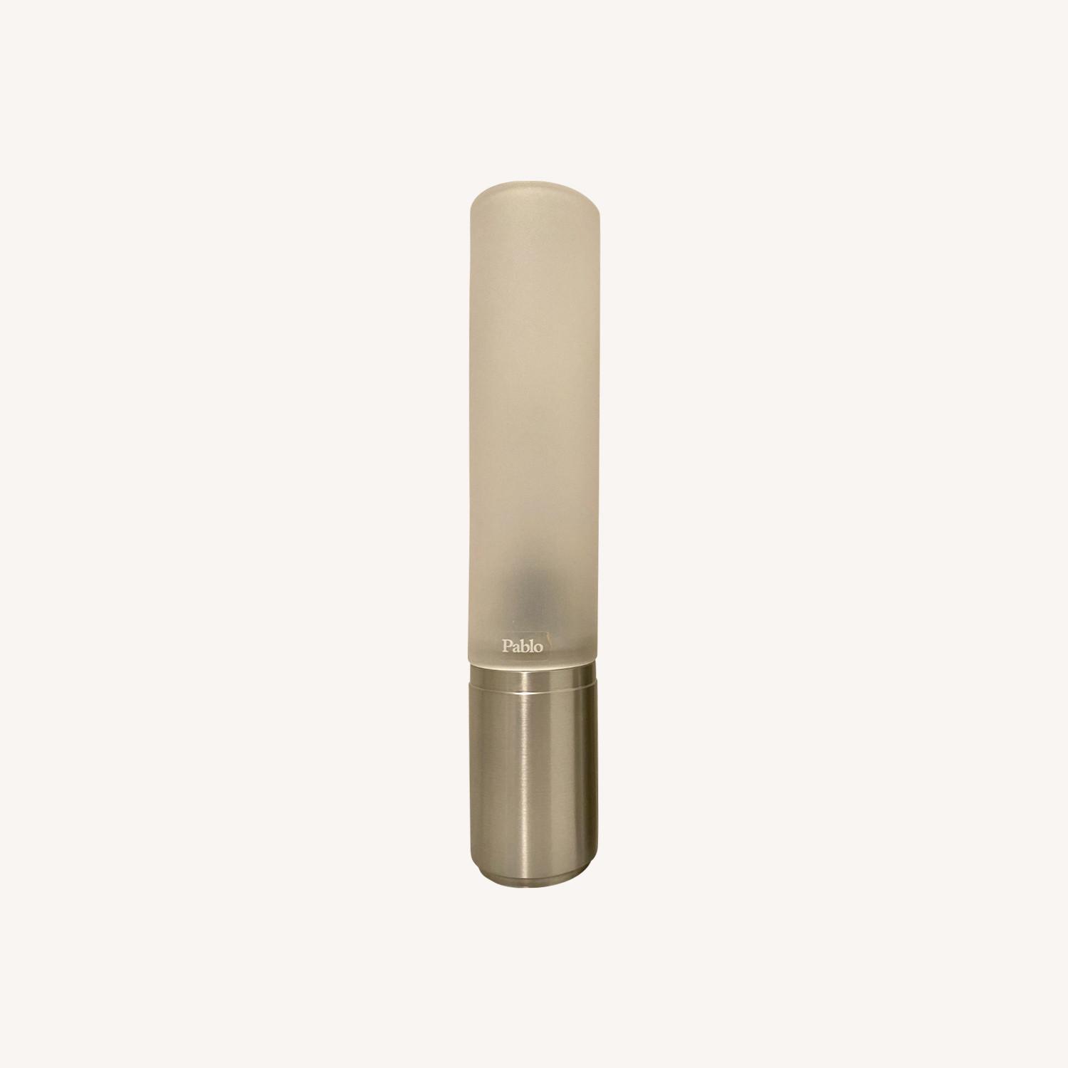 Seller's Notes:A pair of lightly used 12" Pablo 'Elise' Table Lamps with the frosted white shade and silver aluminum base. Both are in full working order and excellent condition throughout. They come with a 6ft cord, switchable dimmer and E14 / 25W Torpedo Frosted bulb. The Elise Table Lamp is a conceptual tribute to the machine age: streamlined, understated, and honest in its function as a light source. Celebrating the most classic of industrial forms, the cylinder. Elise offers a full dimming range and comes with a Frosted acrylic cylindrical diffuser, Silver base and transparent style switched dimmer.