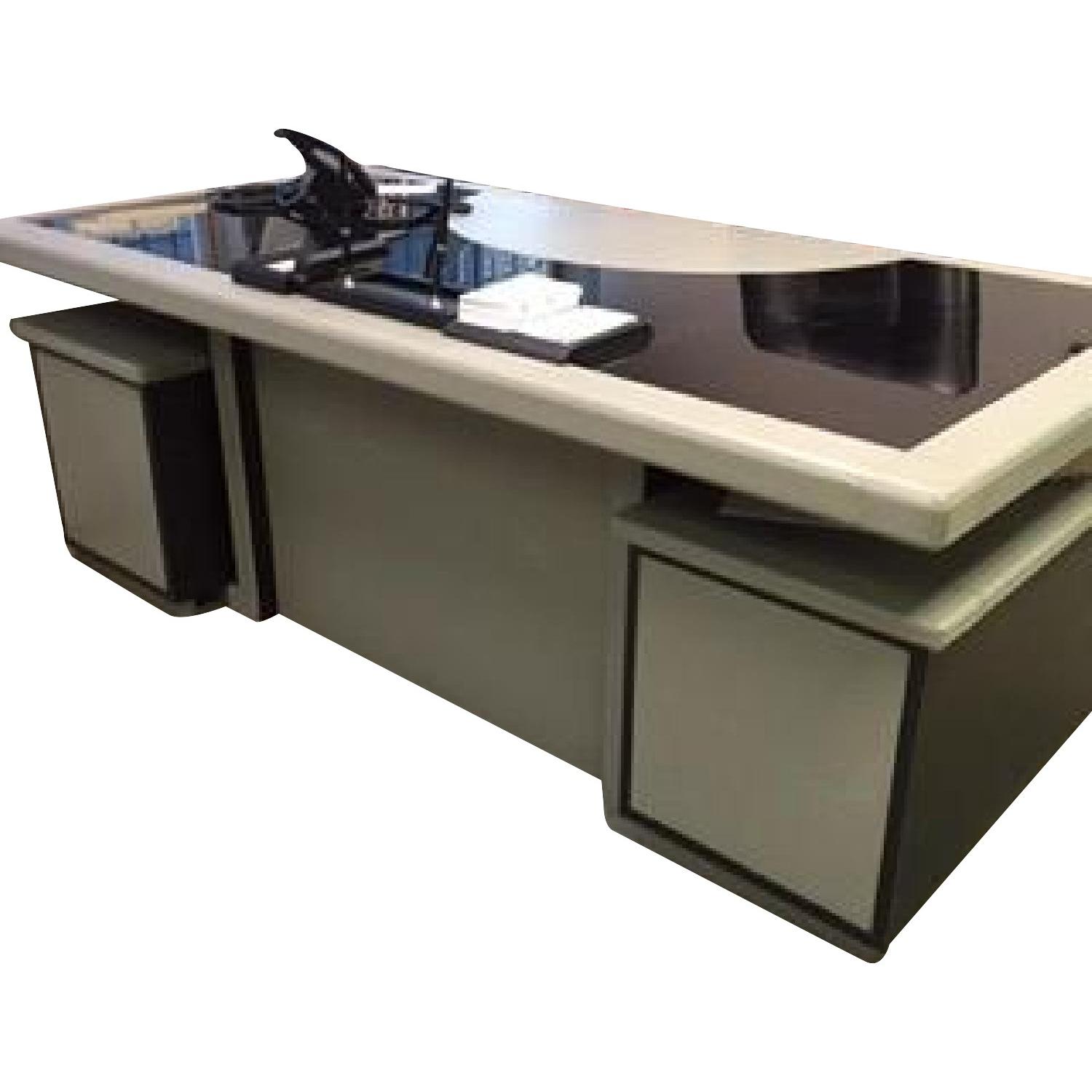 Seller's Notes:THIS UNIQUE PACE COLLECTION DESK WAS PURCHASED 15+ YEARS AGO FOR $ 15,000.00 AND PROVIDES AMPLE STORAGE AND A GLASS/LEATHER WORKSURFACE