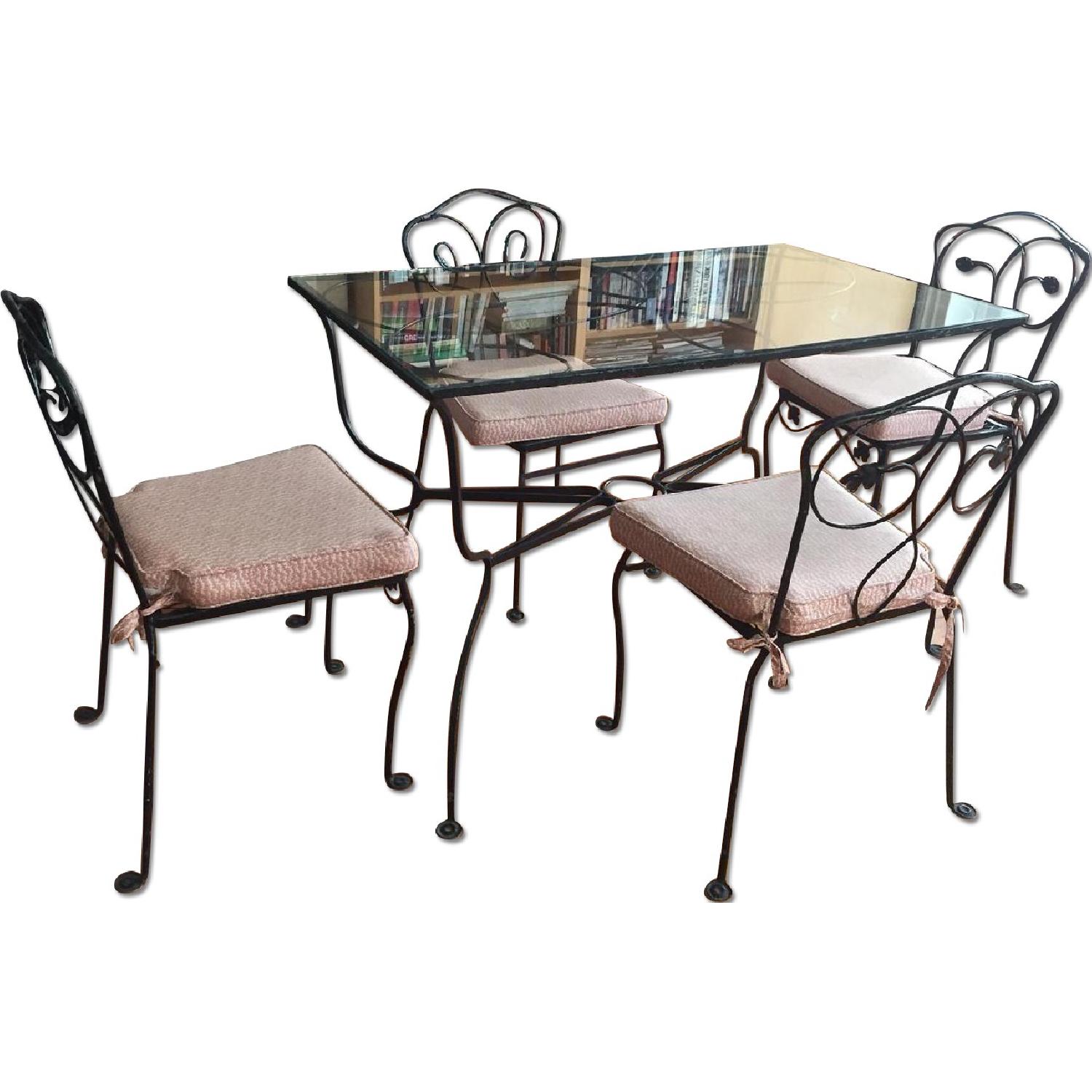 Painted Iron and Glass Dining Table w/ 4 Chairs