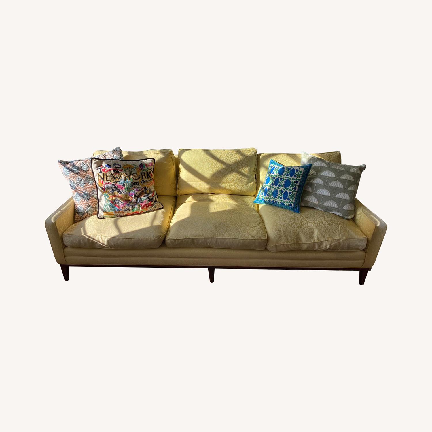Seller's Notes:Beautiful pair of vintage sofas from the 1960’s. Two are available. Must go fast, so if you are interested, feel free to make an offer! Bought a couple years ago from an antique dealer. When acquired, they were in mint condition, never been used or even sat on before us. We have used and absolutely loved them since, so they could use a tiny bit of refreshing; but they are still very beautiful as is, depending on whether their fabric is your cup of tea or not! It is lovely that they are low, as they do not feel too imposing in a room; but they are still deep to sit in and extremely comfortable. Sold as a pair, but would also consider separating. Would love a pickup from downtown Manhattan, but anything is of course possible. Hope you love them as much as I do. Thanks!