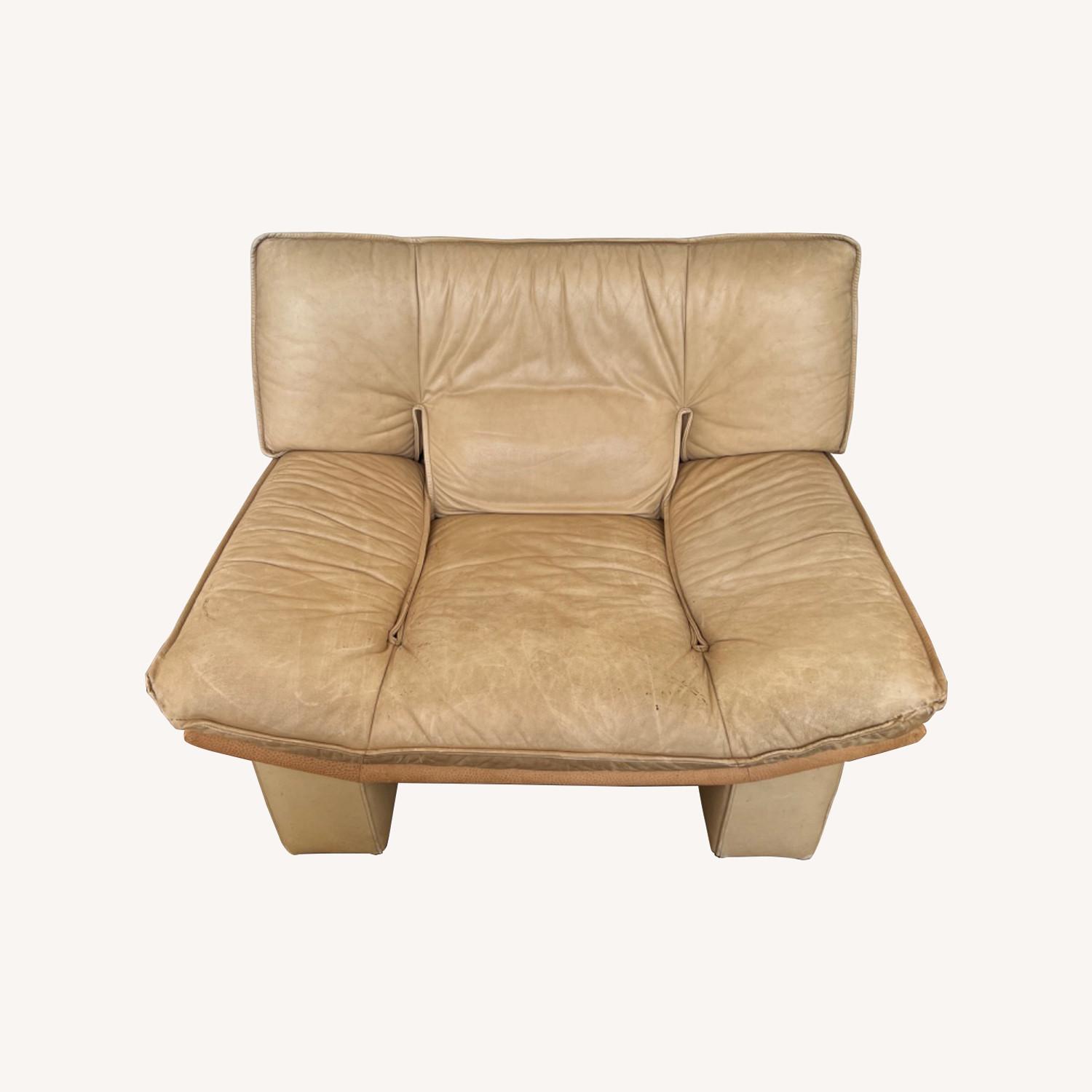 Seller's Notes:These 2 chairs are sold as a set and are cherished by everyone who sits on them. Can easily fit 2 people snugly. My friends are sad I'm selling them but time to make more Space for new furniture. There are custom cream leather. There is pebble leather detail in almond color at the back. VERY COOL LOOKING!